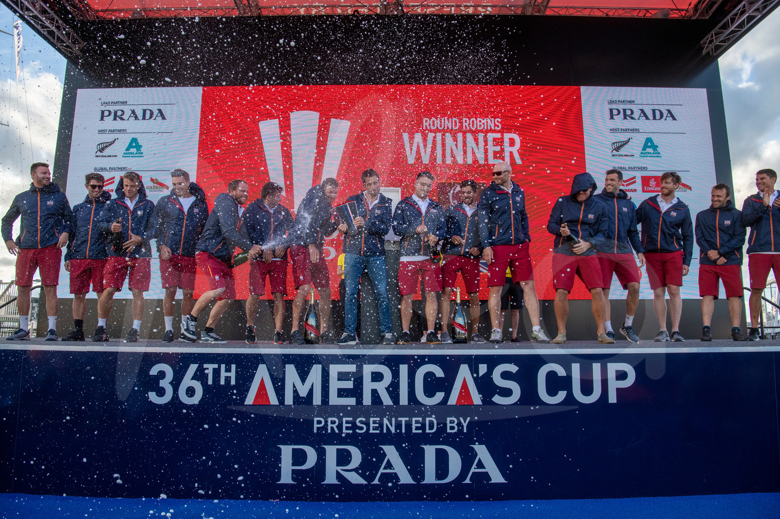 Description | AUCKLAND, NEW-ZEALAND - JANUARY 23: INEOS Team UK celebrate on podium after winning the Round Robin section of the Prada Cup in Auckland, New-Zealand, on January 23, 2021. (photo by Chris Cameron/Alea) |
