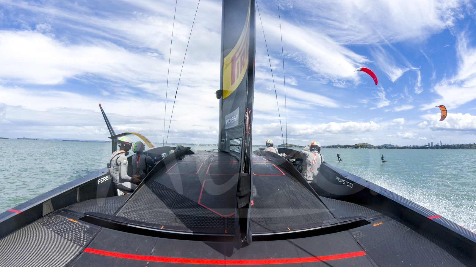 | Description | AUCKLAND, NEW-ZEALAND - FEBRUARY 25: Luna Rossa Prada Pirelli Team is pictured with kitesurfers during a training day before the America's Cup presented by Prada, in Auckland, New-Zealand, on February 25, 2021. (photo by Carlo Borlenghi/Alea) |