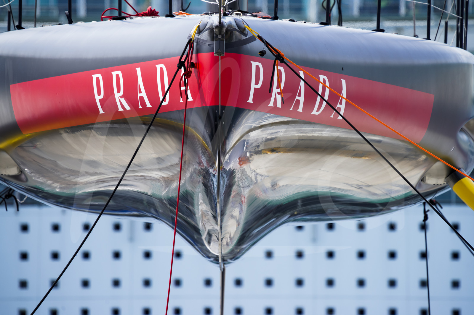 Description | AUCKLAND, NEW-ZEALAND - MARCH 10: Luna Rossa Prada Pirelli boat is illustrated in the team base during America's Cup, in Auckland, New Zealand, on March 10, 2021. (photo by Luca Butto/Alea) |