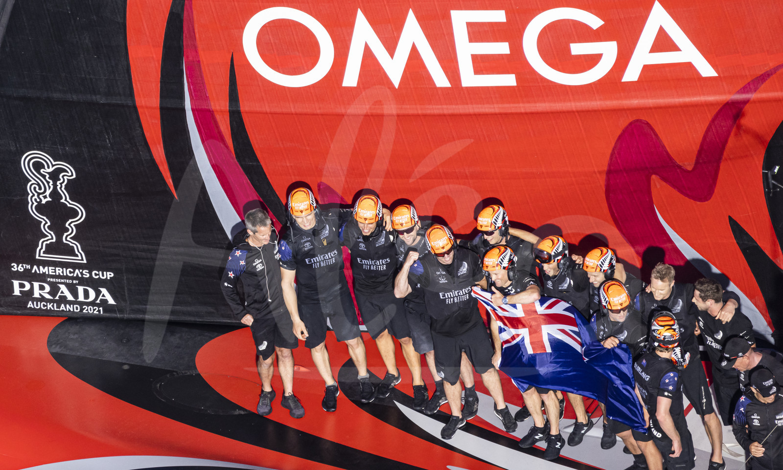 Description | AUCKLAND, NEW-ZEALAND - MARCH 17: Emirates Team New Zealand crew members celebrate winning the America's Cup presented by Prada, in Auckland, New-Zealand, on March 17, 2021. (photo by Carlo Borlenghi/Alea) |
