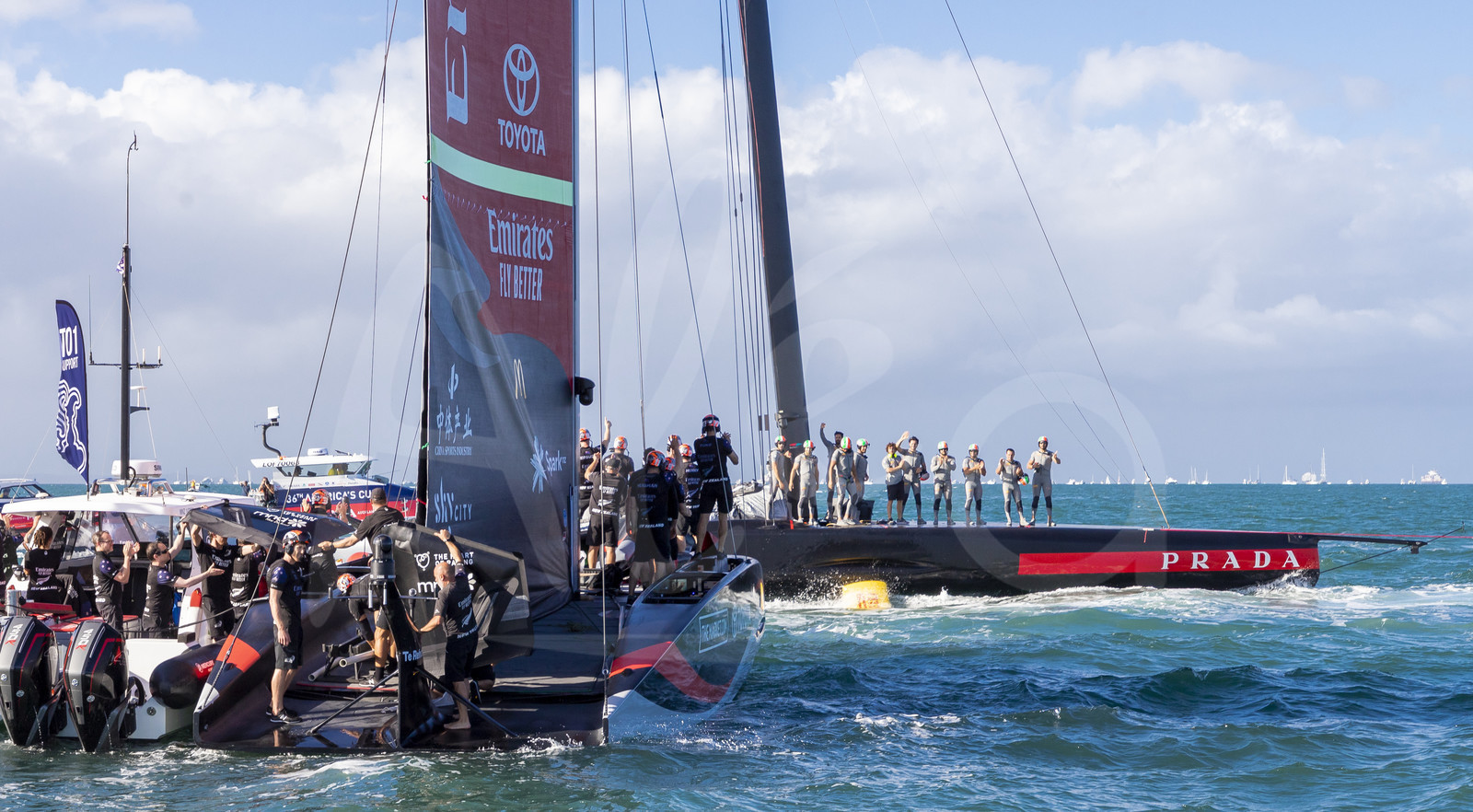| Description | AUCKLAND, NEW-ZEALAND - MARCH 17: Emirates Team New Zealand crew members are congratulated by the Luna Rossa Prada Pirelli team after winning the America's Cup presented by Prada, in Auckland, New-Zealand, on March 17, 2021. (photo by Stefano Gattini/Alea) |