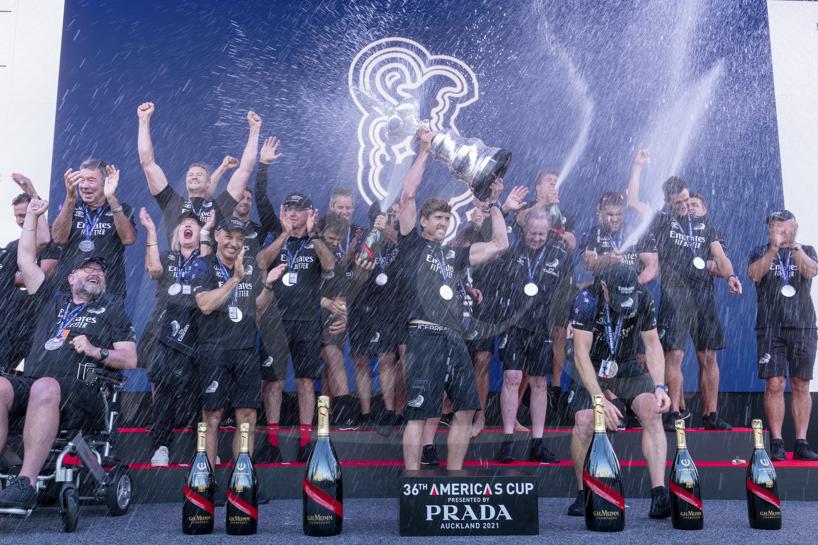 Description | AUCKLAND, NEW-ZEALAND - MARCH 17: Emirates Team New Zealand helmsman Peter Burling lifts the cup on stage after winning the America's Cup against Luna Rossa Prada Pirelli Team 7 - 3, in Auckland, New-Zealand, on March 17, 2021. (photo by Chris Cameron/Alea) |