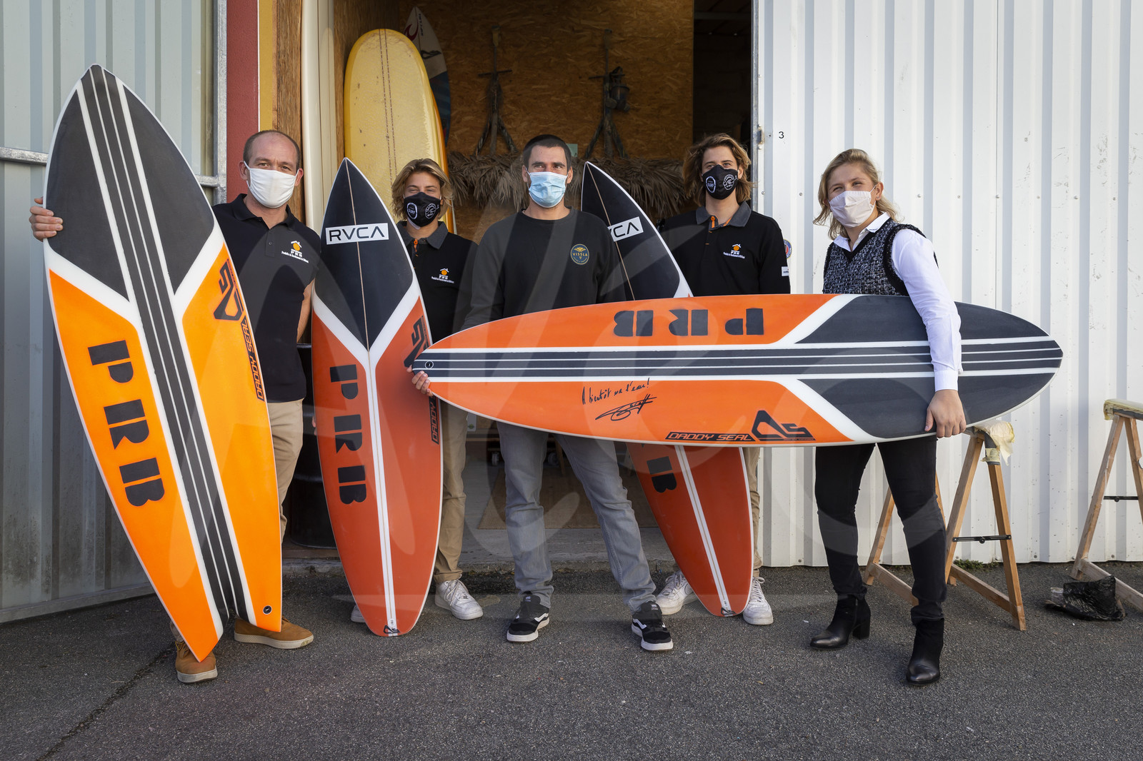 Description | #EN# LES SABLES D’OLONNE, FRANCE - OCTOBER 22: Skipper Kevin Escoffier receives his surfboard in the colors of his IMOCA PRB, from the hands of the sandy shaper Mathieu Portero (Daddy Seal Surfboards), in the presence of the surfing brothers of Saint-Bathelemy Noé and Thomas Lédée, before the start of the Vendée Globe, in Les Sables d’Olonne, France, on October 22, 2020. (Photo by Jean-Marie Liot/Alea) #FR# LES SABLES D’OLONNE, FRANCE - 22 OCTOBRE: Kevin Escoffier reçoit sa planche de surf aux couleurs de son IMOCA PRB, des mains du shaper sablais Mathieu Portero (Daddy Seal Surfboards), en présence des frères surfeurs de Saint-Bathelemy Noé et Thomas Lédée, avant le départ du Vendée Globe, aux Sables d’Olonne le 22 octobre 2020. (photo Jean-Marie LIOT/AleA) |