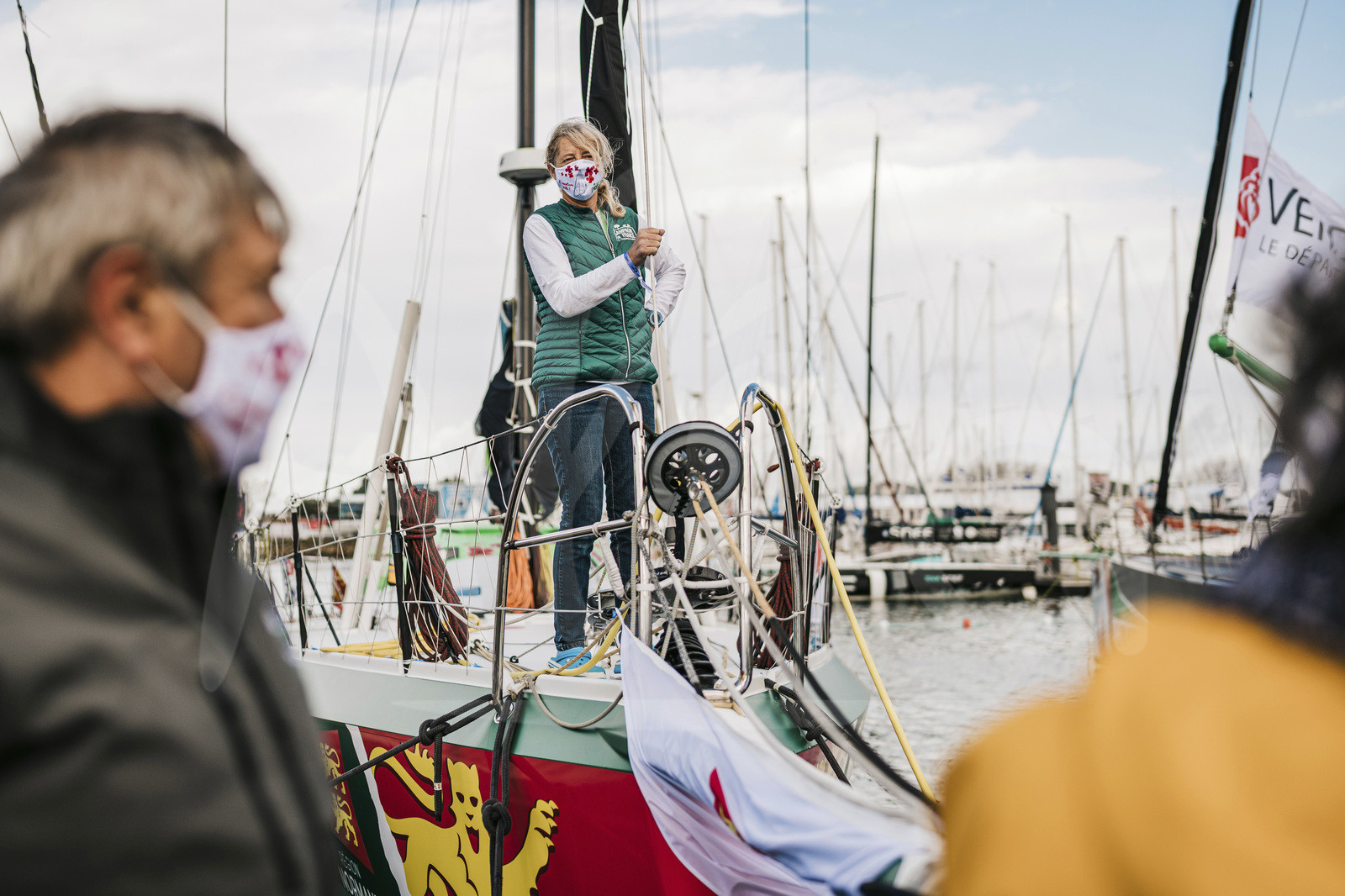 Description | #EN# LES SABLES D’OLONNE, FRANCE - OCTOBER 25: Sailor Halvard Mabire and skipper Miranda Merron are portraited at pontoons during the Vendee Globe prestart in les Sables d’Olonne, France, on October 25, 2020. (Photo by Jean-Louis Carli/Alea) #FR# LES SABLES D’OLONNE, FRANCE - 25 OCTOBRE: Le marin Halvard Mabire et la skipper Miranda Merron posent sur les pontons lors de la semaine prestart du Vendee Globe aux Sables d’Olonne, le 25 Octobre 2020. (Photo by Jean-Louis Carli/Alea) |