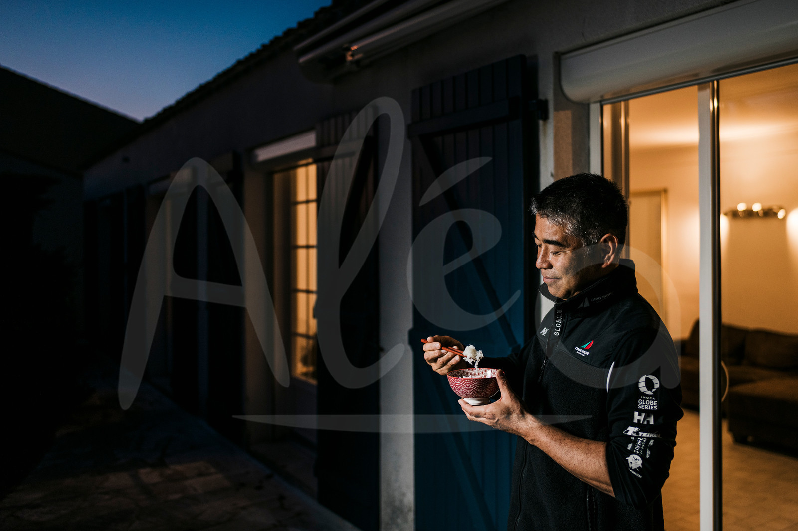 Description | #EN# LES SABLES D’OLONNE, FRANCE - NOVEMBER 4: Japanese skipper Kojiro Shiraishi is portraited eating his home made food in his confinement house, during the Vendee Globe prestart in les Sables d’Olonne, France, on November 4, 2020. (Photo by Jean-Louis Carli/Alea) #FR# LES SABLES D’OLONNE, FRANCE - 4 NOVEMBRE: Le skipper japonais Kojiro Shiraishi est photographié en train de manger un repas maison dans leur lieu de confinement, lors de la semaine prestart du Vendee Globe aux Sables d’Olonne, le 4 Novembre 2020. (Photo by Jean-Louis Carli/Alea) |