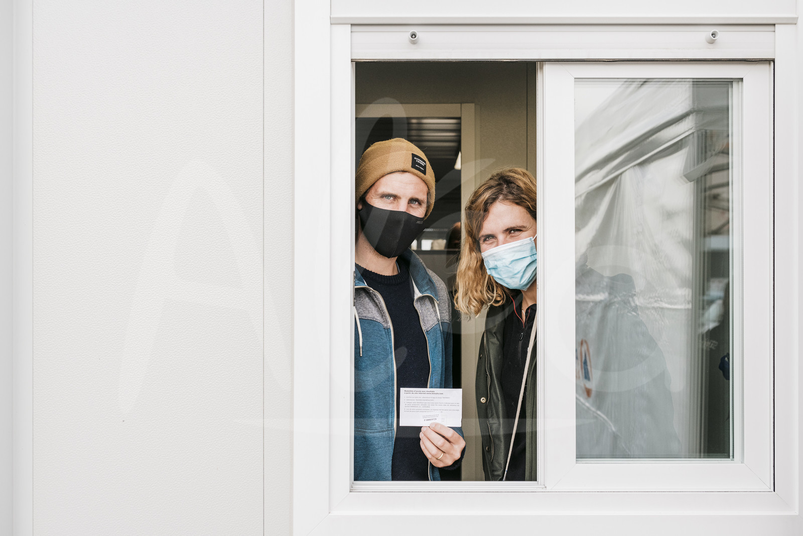 Description | #EN# LES SABLES D’OLONNE, FRANCE - NOVEMBER 6: Skipper Clarisse Cremer is coming with her husband for her last PCR test during the Vendee Globe prestart in les Sables d’Olonne, France, on November 6, 2020. (Photo by Jean-Louis Carli/Alea) #FR# LES SABLES D’OLONNE, FRANCE - 6 NOVEMBRE: La skipper Clarisse Cremer arrive avec son mari pour son dernier test PCR lors de la semaine prestart du Vendee Globe aux Sables d’Olonne, le 6 Novembre 2020. (Photo by Jean-Louis Carli/Alea) |