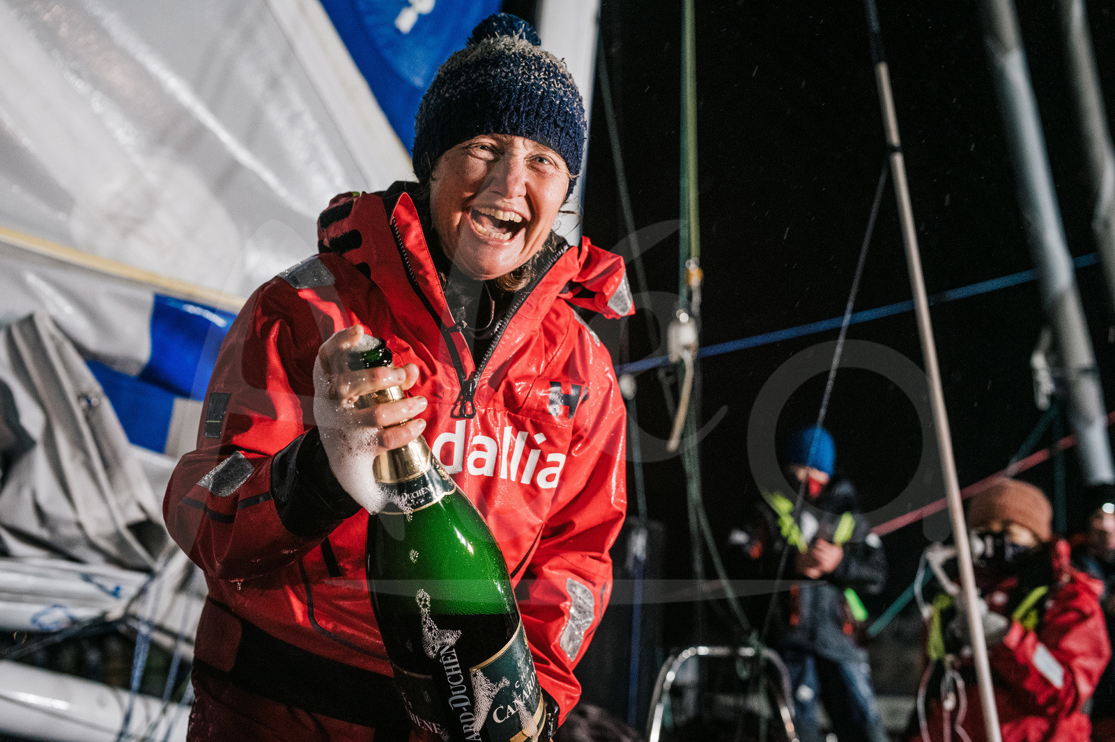 Description | #EN# LES SABLES D’OLONNE, FRANCE - FEBRUARY 12: Skipper Pip Hare (UK), Medallia, is pictured celebrating with champagne during arrival of the Vendee Globe sailing race, on February 12, 2021. (Photo by Jean-Louis Carli/Alea) #FR# LES SABLES D’OLONNE, FRANCE - 12 FEVRIER: La skipper Pip Hare, Medallia, est photographiée célébrant au champagne lors de son arrivée du Vendee Globe, le 12 Février 2021. (Photo Jean-Louis Carli/Alea) |