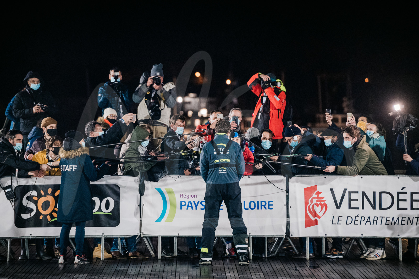 Description | #EN# LES SABLES D’OLONNE, FRANCE - JANUARY 27: Apivia, skipper Charlie Dalin (FRA), is pictured talking to media during finish of the Vendee Globe sailing race, on January 27, 2021. (Photo by Jean-Louis Carli/Alea) #FR# LES SABLES D’OLONNE, FRANCE - 27 JANVIER: Apivia, skipper Charlie Dalin (FRA), est photographié parlant aux médias lors de son arrivée dans la course du Vendee Globe, le 27 Janvier 2021. (Photo Jean-Louis Carli/Alea) |
