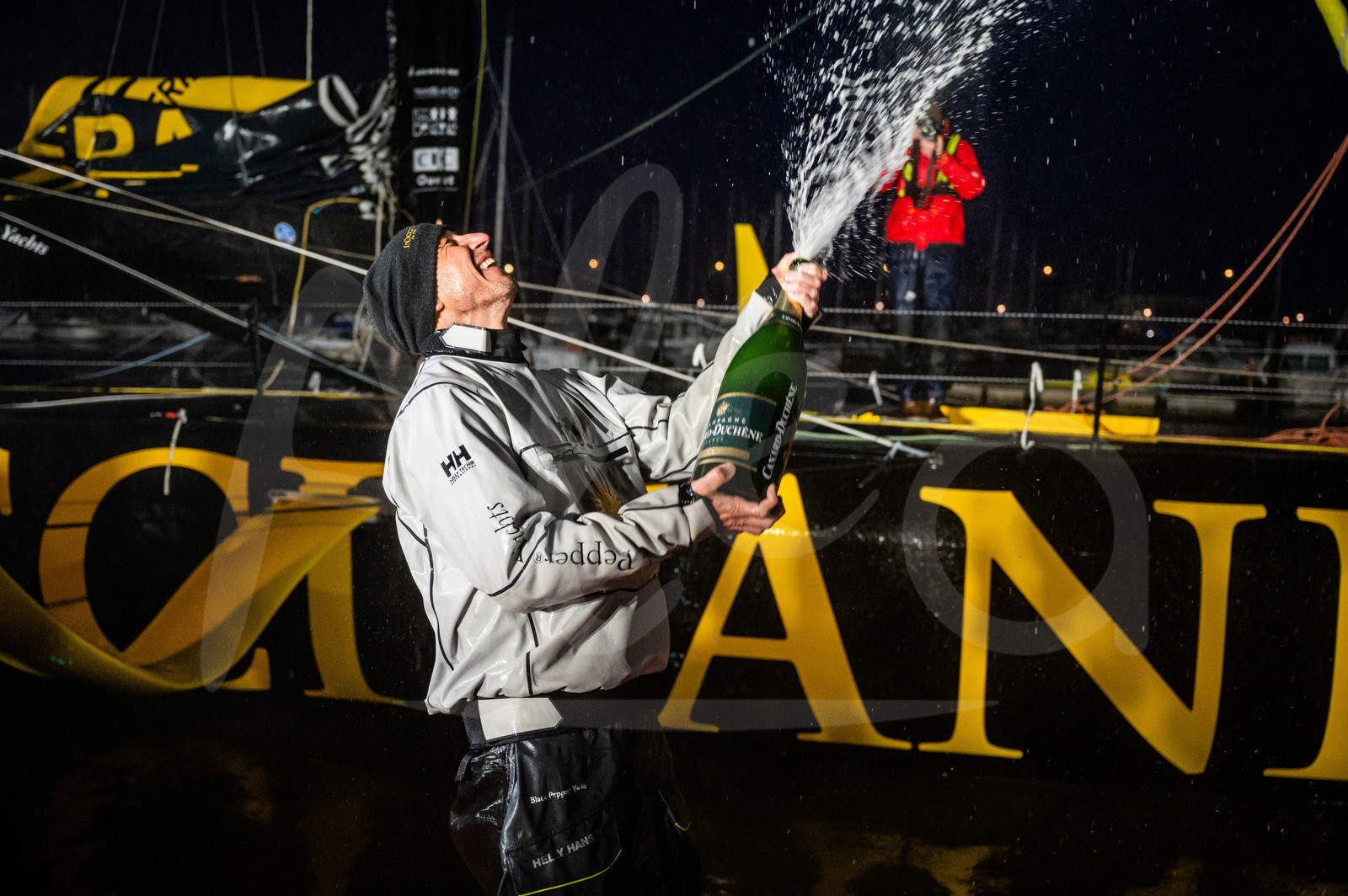 Description | #EN# LES SABLES D’OLONNE, FRANCE - FEBRUARY 1: Skipper Armel Tripon (FRA), L’Occitane en Provence, is pictured celebrating with champagne after crossing the finish line 11th of the Vendee Globe sailing race, on February 01, 2021. (Photo by Bernard Le Bars/Alea) #FR# LES SABLES D’OLONNE, FRANCE - 1er FEVRIER: Skipper Armel Tripon (FRA), L’Occitane en Provence, est photographié célébrant au champagne après avoir franchi la ligne d’arrivée 11ème lors de la course du Vendee Globe, le 1er Février 2021. (Photo Bernard Le Bars/Alea) |
