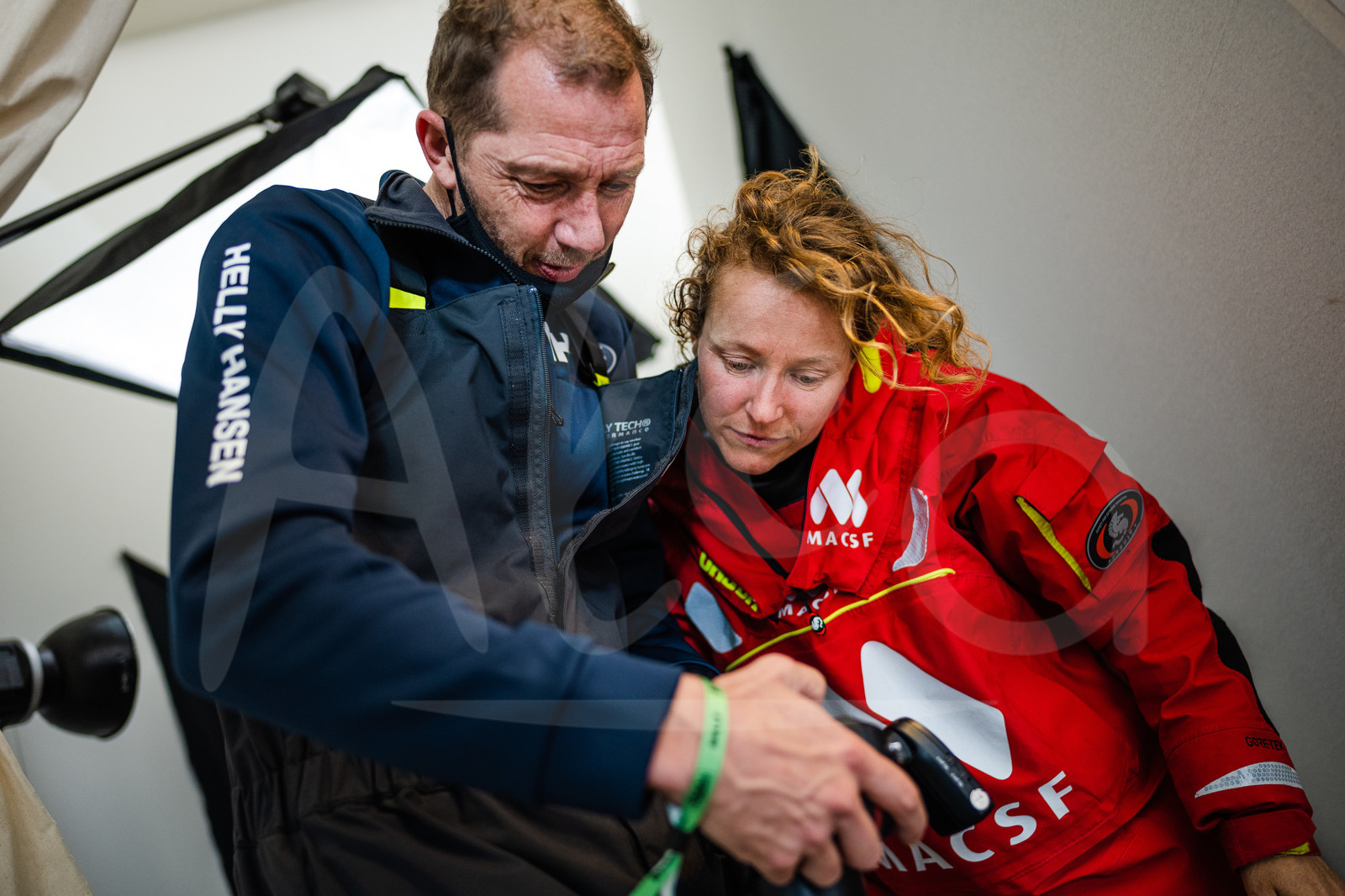 | Description | #EN# LES SABLES D’OLONNE, FRANCE - FEBRUARY 24: Skipper Isabelle Joschke, MACSF, is checking her studio shooting with Vincent Curutchet during arrival after retiring from the Vendee Globe sailing race, on February 24, 2021. (Photo by Jean-Louis Carli/Alea) #FR# LES SABLES D’OLONNE, FRANCE - 24 FEVRIER: La skipper Isabelle Joschke, MACSF, vérifie sa photo de studio avec Vincent Curutchet pendant son arrivée après avoir du abandonner la course du Vendee Globe, le 24 Février 2021. (Photo Jean-Louis Carli/Alea) |