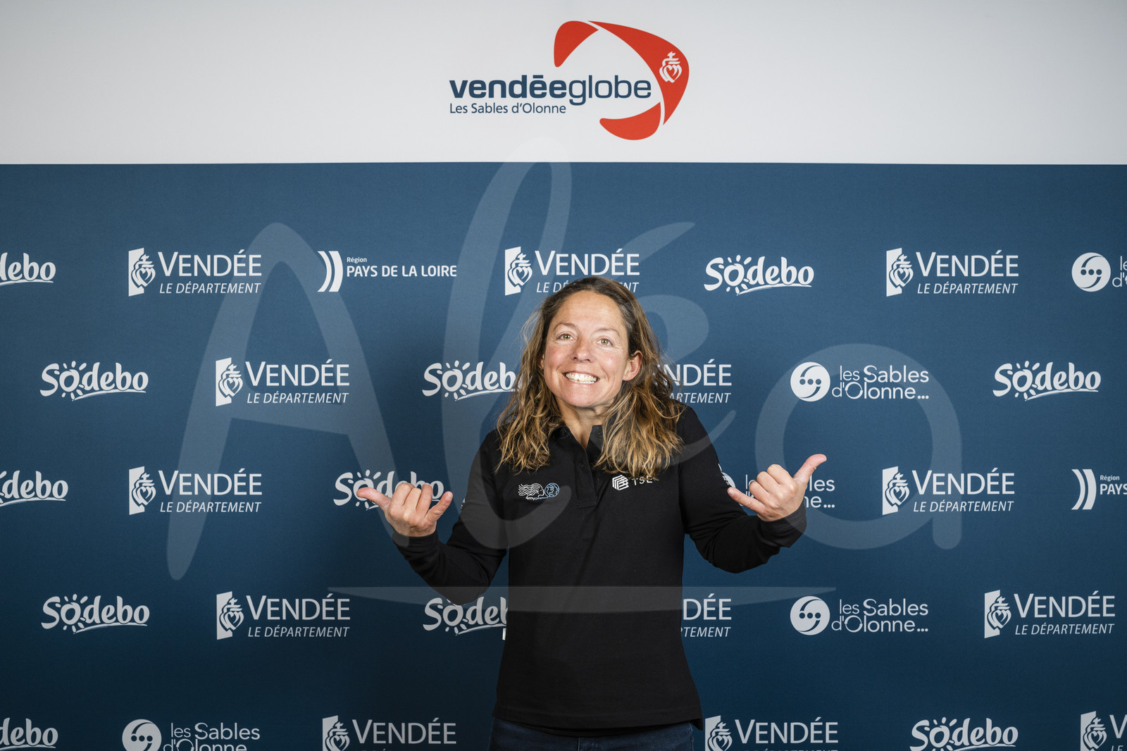Description | #EN# LES SABLES D’OLONNE, FRANCE - FEBRUARY 28: Skipper Alexia Barrier (FRA), TSE - 4myPlanet, is portraited before the official backdrop just after finish of the Vendee Globe sailing race, on February 28, 2021. (Photo by Jean-Louis Carli/Alea) #FR# LES SABLES D’OLONNE, FRANCE - 28 FEVRIER: La skipper Alexia Barrier (FRA), TSE - 4myPlanet, est photographiée devant le backdrop officiel juste après son arrivée dans la course du Vendee Globe, le 28 Février 2021. (Photo Jean-Louis Carli/Alea) |
