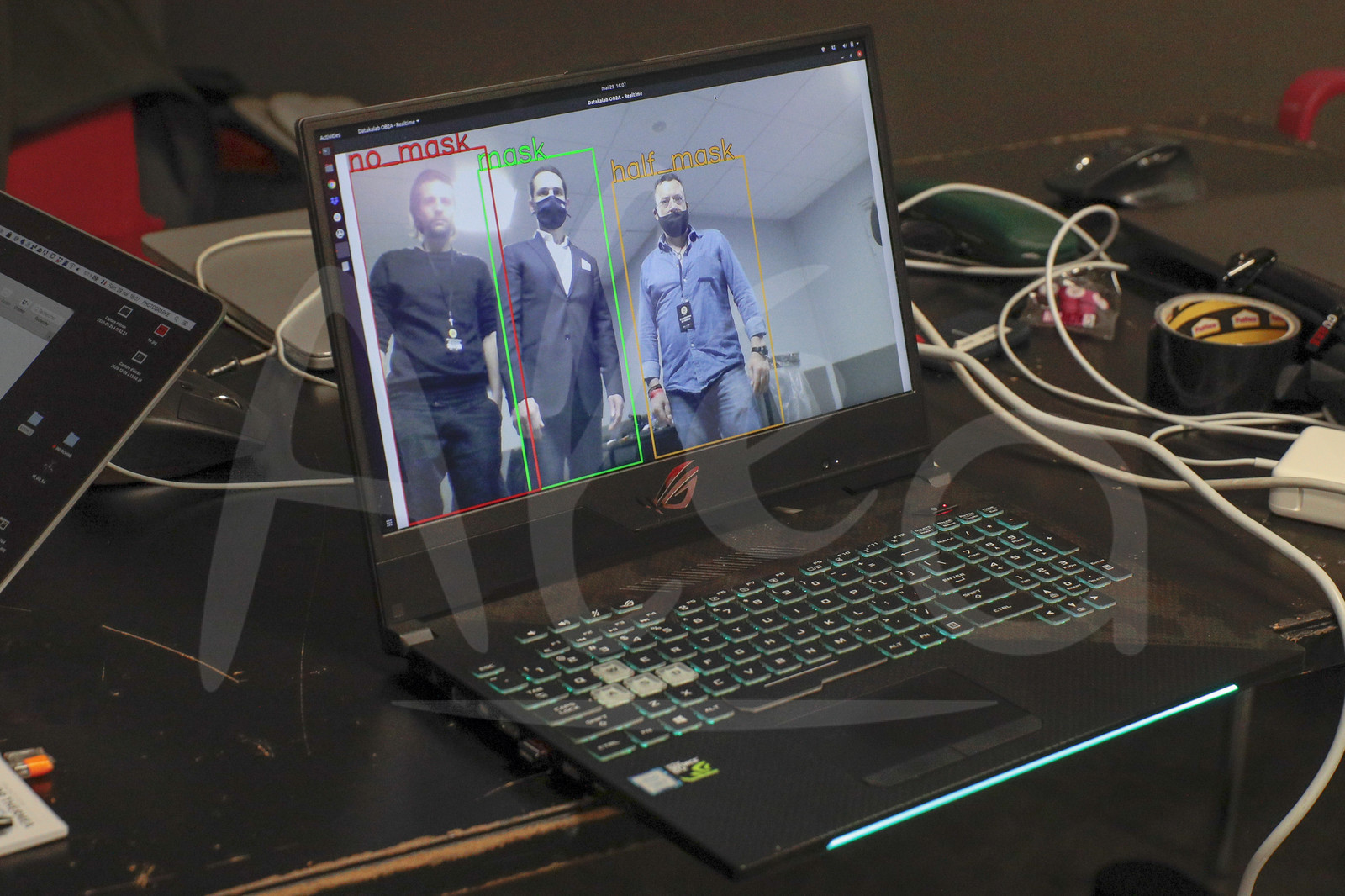 PARIS, FRANCE - 29 MAI: Démonstration du système Datakalab de détection instantanée du port des masques avec Boris Dorado (Datakalab) lors de l’étude médicale et concert test Ambition Live Again qui se déroule à l’AccorHotels Arena de Paris, le 29 Mai 2021. (Photo Stéphane Allaman/Alea)