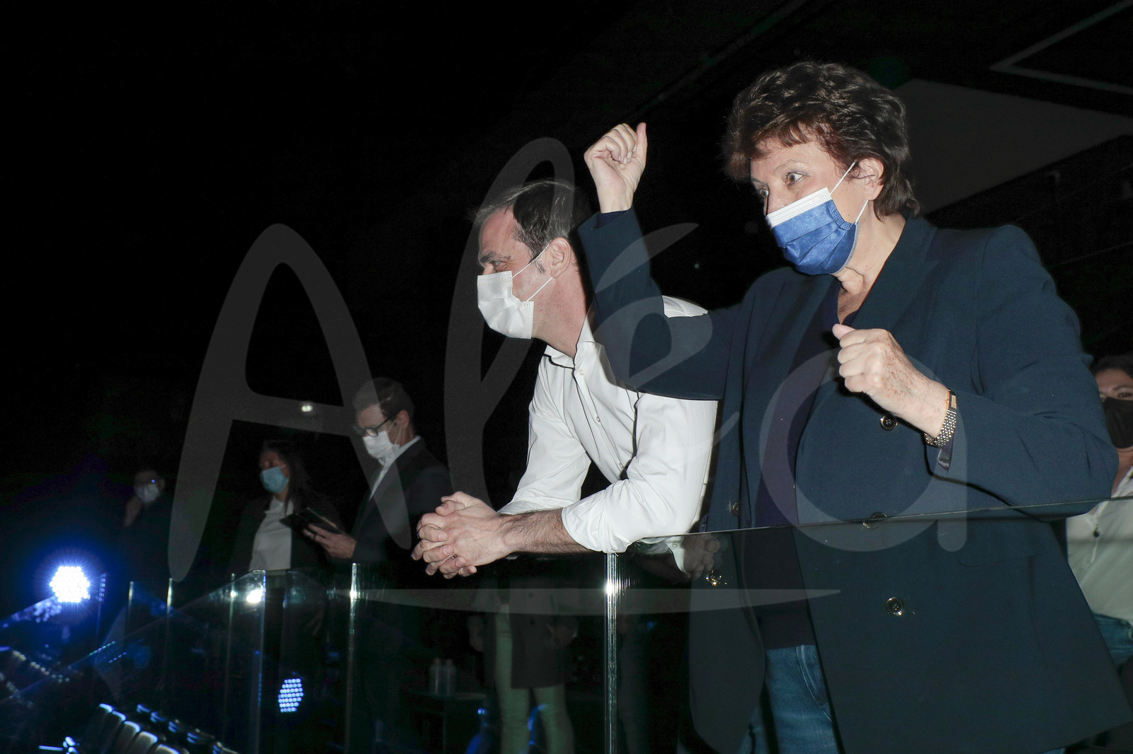 PARIS, FRANCE - 29 MAI: Olivier Veran (Ministre de la Santé) est photographié avec Roselyne Bachelot (Ministre de la Culture) lors de l’étude médicale et concert test Ambition Live Again qui se déroule à l’AccorHotels Arena de Paris, le 29 Mai 2021. (Photo Stéphane Allaman/Alea)