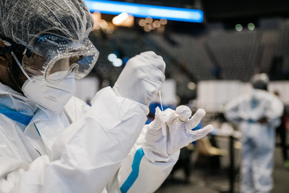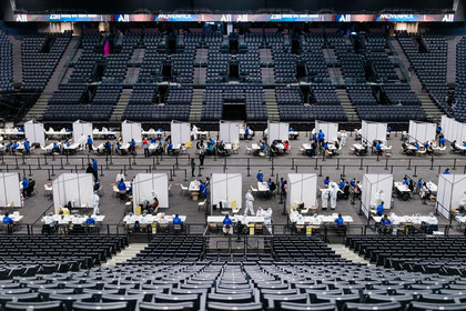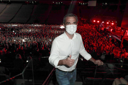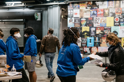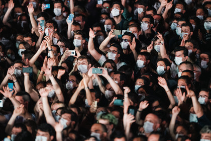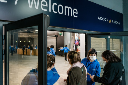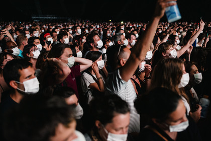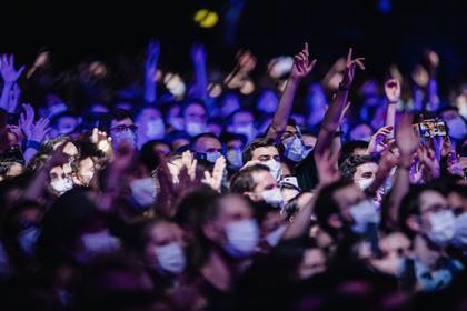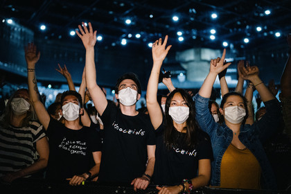 Reportage photo sur le concert-test "Ambition Live Again" organisé par PRODISS et l'AP-HP, qui s'est déroulé à l'AccorHotels Arena (Bercy) le Samedi 29 Mai 2021, avec 5000 personnes sélectionnées et testées pour assister masquées et debout dans la fosse aux prestations du DJ Etienne de Crecy et du groupe Indochine.