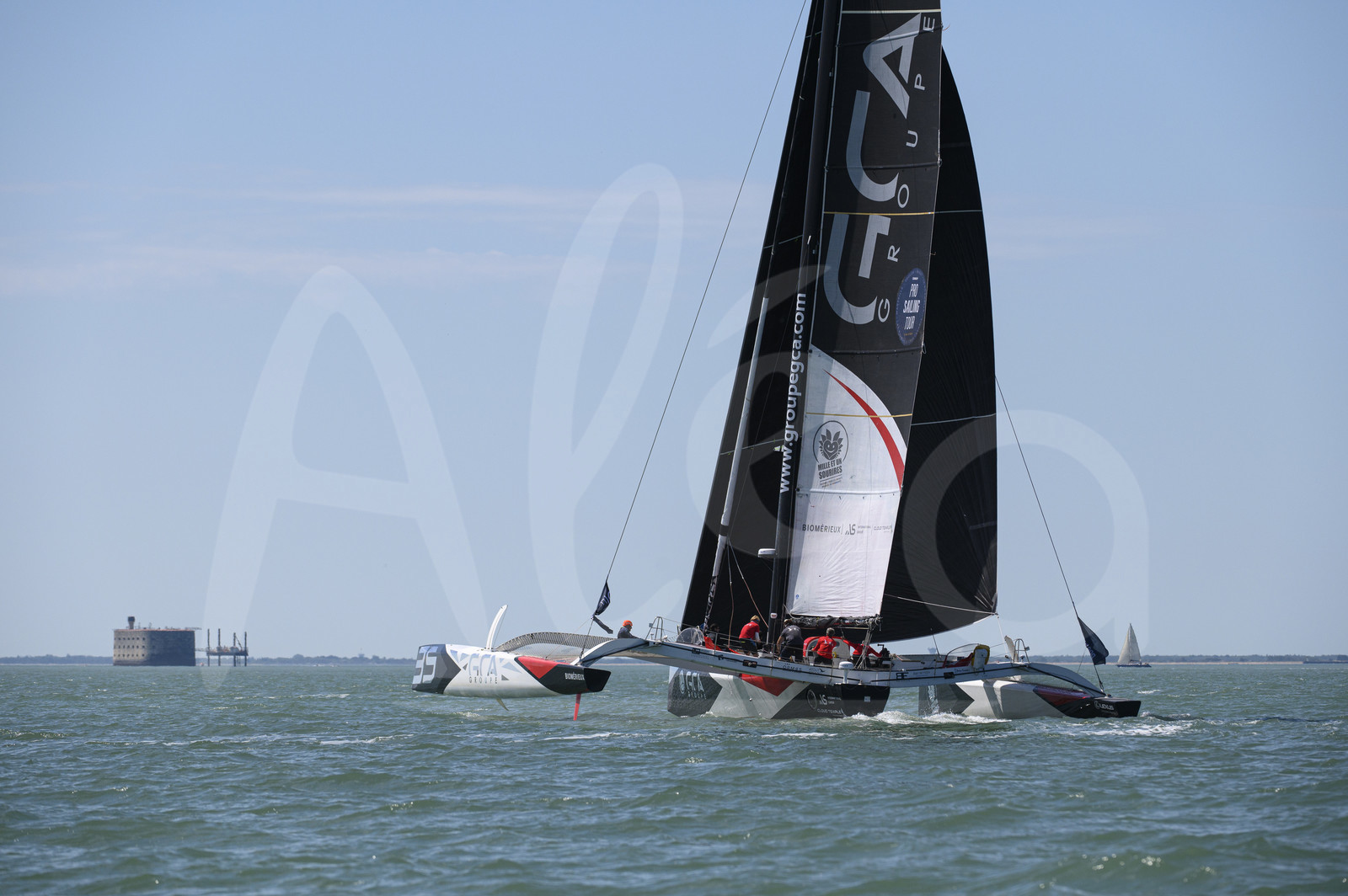Description | LA ROCHELLE, FRANCE - MAY 30: The Ocean Fifty GCA - 1001 sourires with his skipper Gilles Lamire is illustrated with Fort Boyard in the background during the Pro Sailing Tour stage in La Rochelle, France, on May 30th, 2021. (Photo by Olivier Blanchet / Alea) |