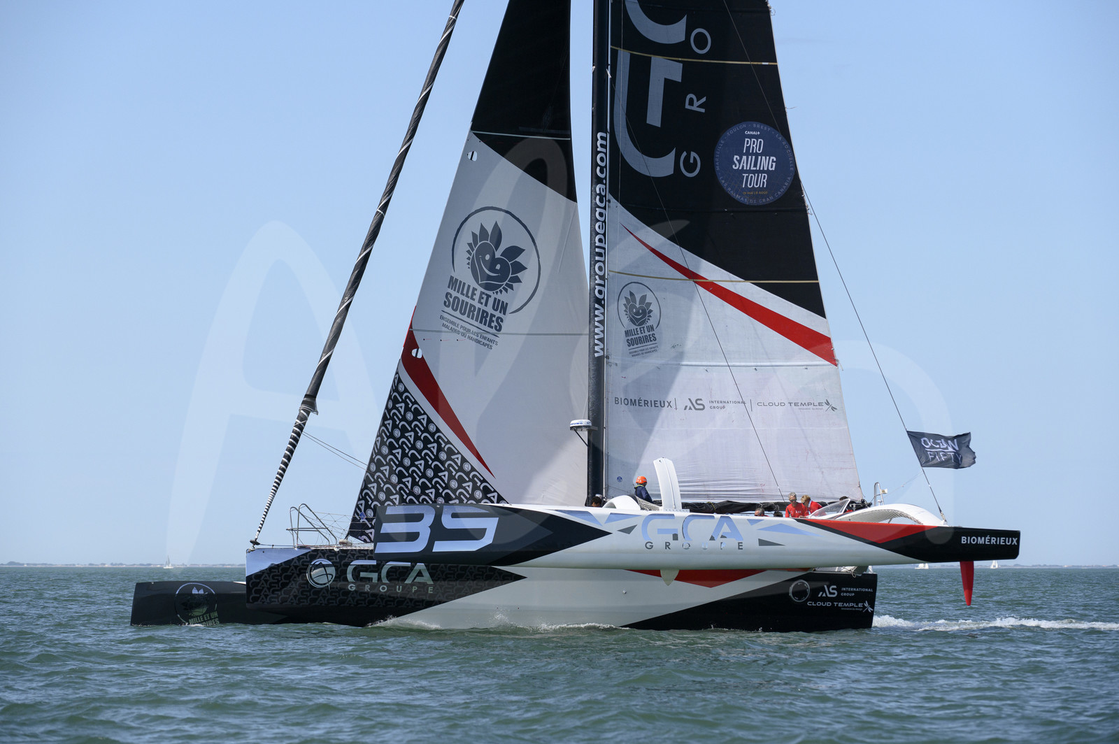 Description | LA ROCHELLE, FRANCE - MAY 30: The Ocean Fifty GCA-1001 sourires and his skipper Gilles Lamire is illustrated during the Pro Sailing Tour stage in La Rochelle, France, on May 30th, 2021. (Photo by Olivier Blanchet / Alea) |
