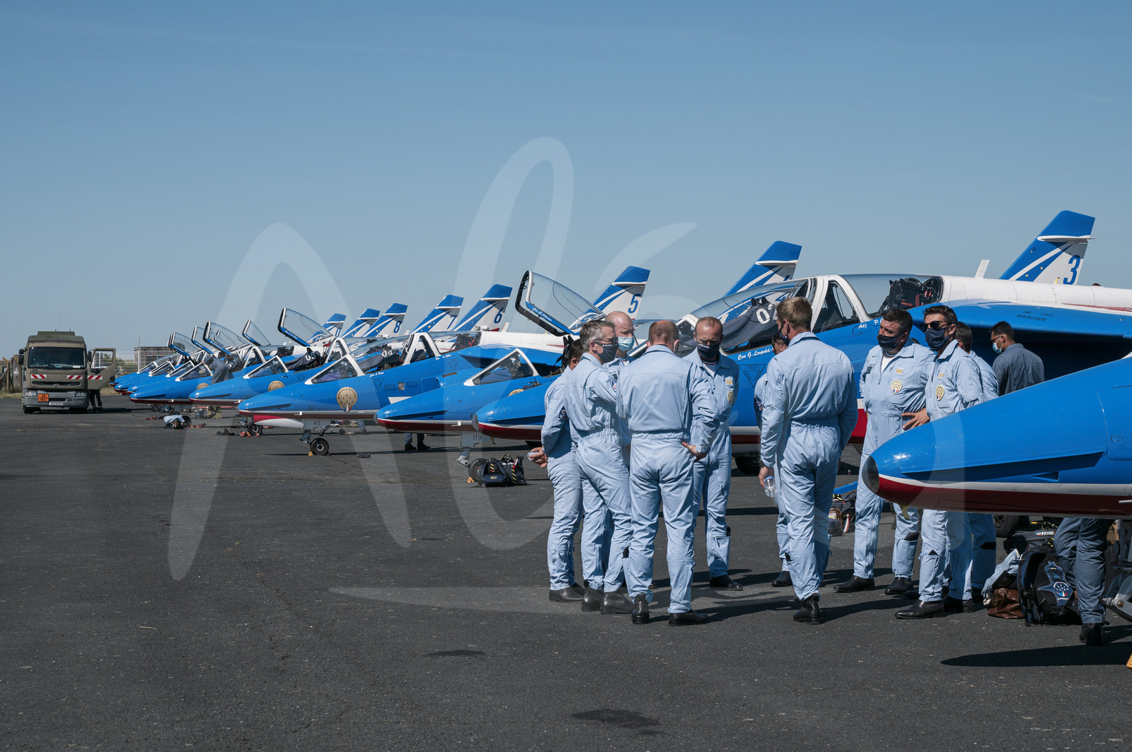 Description | LA ROCHELLE, FRANCE - JUNE 13: The Alphajets pilots of the PAF, Patrouille Aerienne de France, are debriefing on the tarmac of the airport, on June 13, 2021 in La Rochelle, France. (Photo by Olivier Blanchet / Alea) |