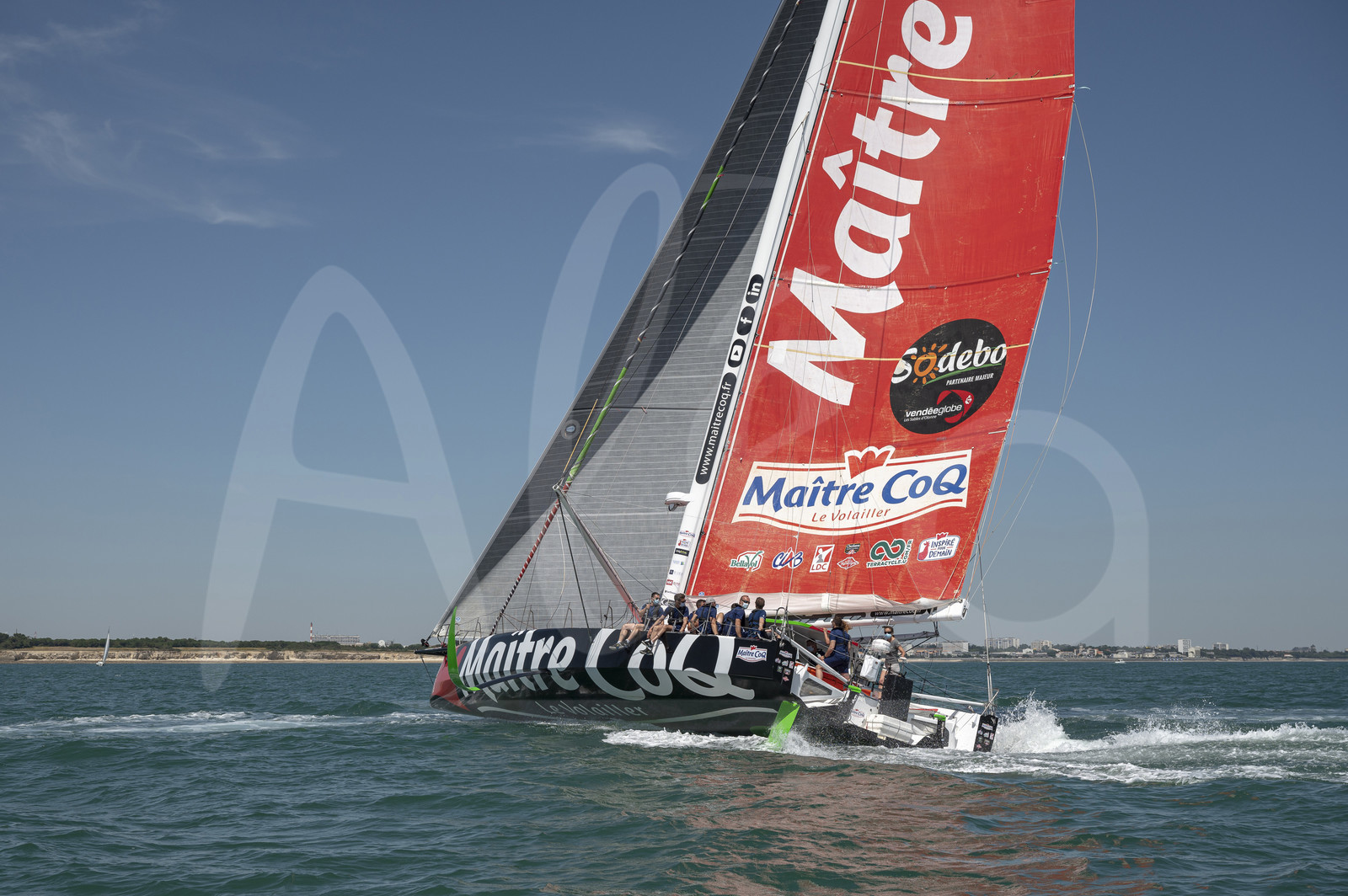 | Description | LA ROCHELLE, FRANCE - JUNE 14: Members of the PAF, Patrouille Aerienne de France, are sailing on Imoca Maitre Coq with winner of the Vendee Globe Yannick Bestaven, on June 14, 2021 in La Rochelle, France. (Photo by Olivier Blanchet / Alea) |