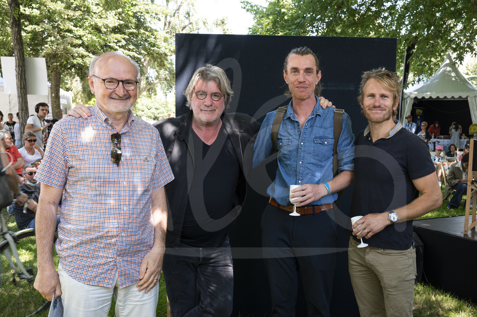 Description | LA ROCHELLE, FRANCE - JULY 11: French skipper Francois Gabart is posing with Francofolies music festival director Gerard Pont, journalist Eric Fottorino and artist Ben Mazue on July 11, 2021 in La Rochelle, France. (Photo by Olivier Blanchet/Alea) |