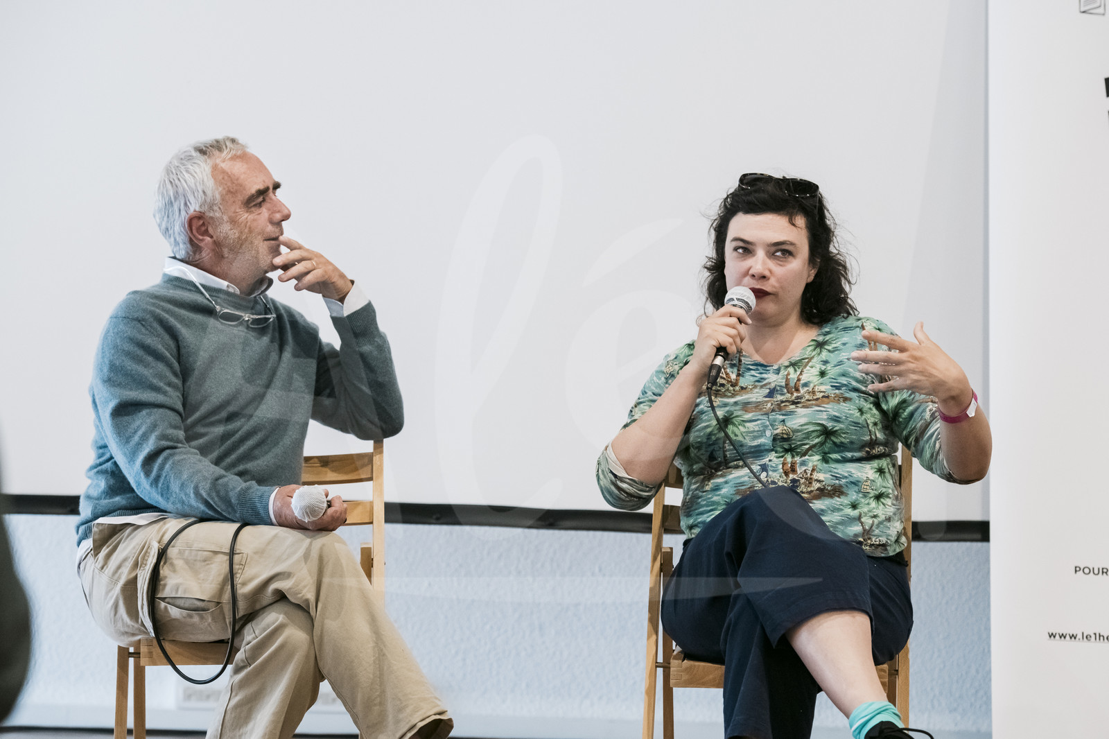Description | LA ROCHELLE, FRANCE - JULY 13: French skipper Loïck Peyron is talking with artist Rosemary Standley, singer of the franco american band Moriarty, during the Francofolies music festival on July 13, 2021 in La Rochelle, France. (Photo by Olivier Blanchet/Alea) |