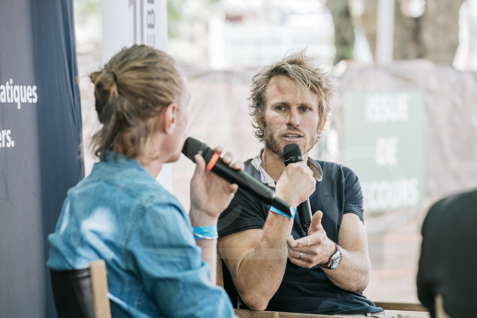 Description | LA ROCHELLE, FRANCE - JULY 11: French skipper Francois Gabart is talking with artist Ben Mazue during the Francofolies music festival on July 11, 2021 in La Rochelle, France. (Photo by Olivier Blanchet/Alea) |