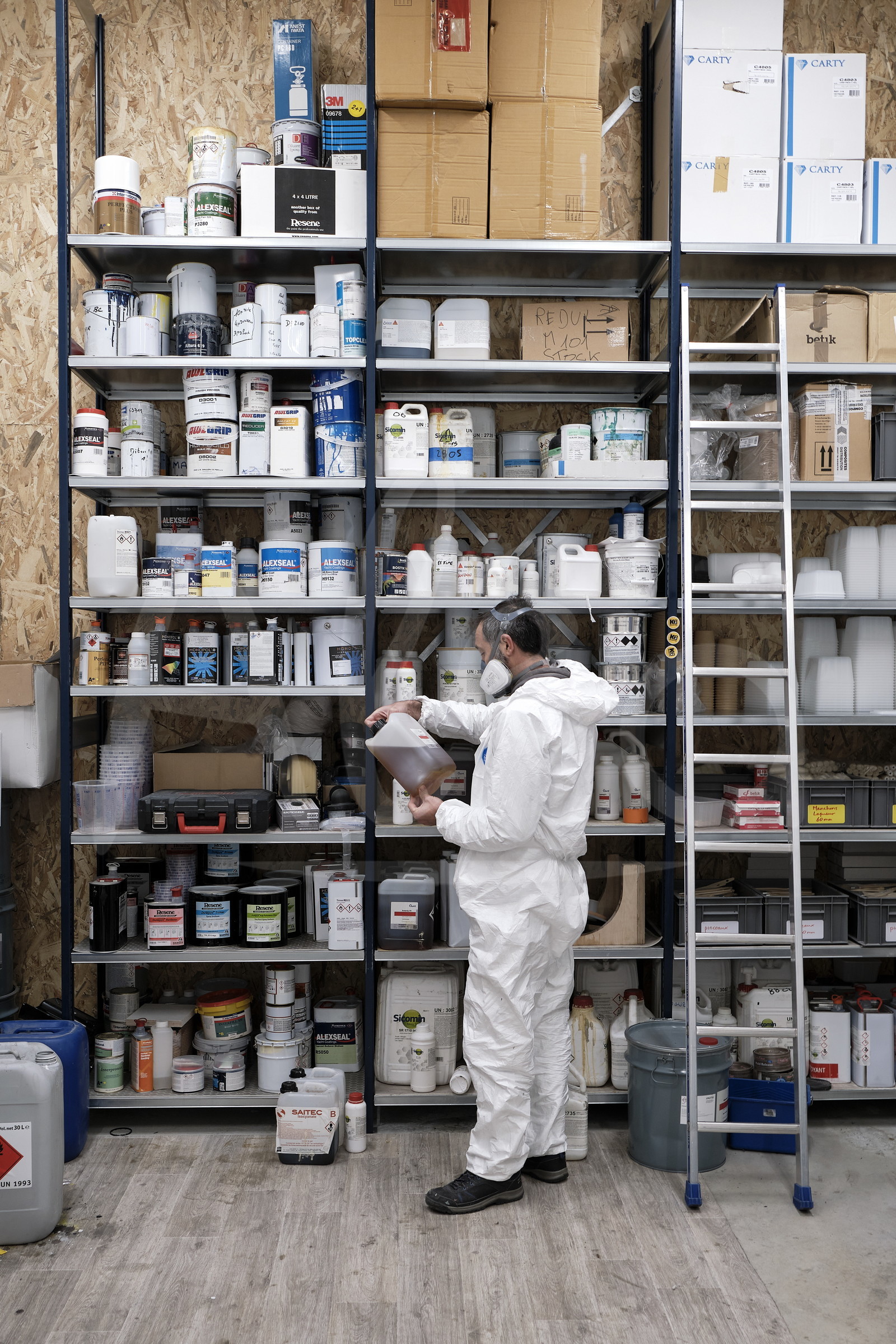 | Description | Construction du trimaran Ultim M101 (François Gabart) dans les locaux de Mer Concept à Concarneau le 09/12/2020 - salle des produits et matériaux composites. - Photo Benoit Stichelbaut / Alea |