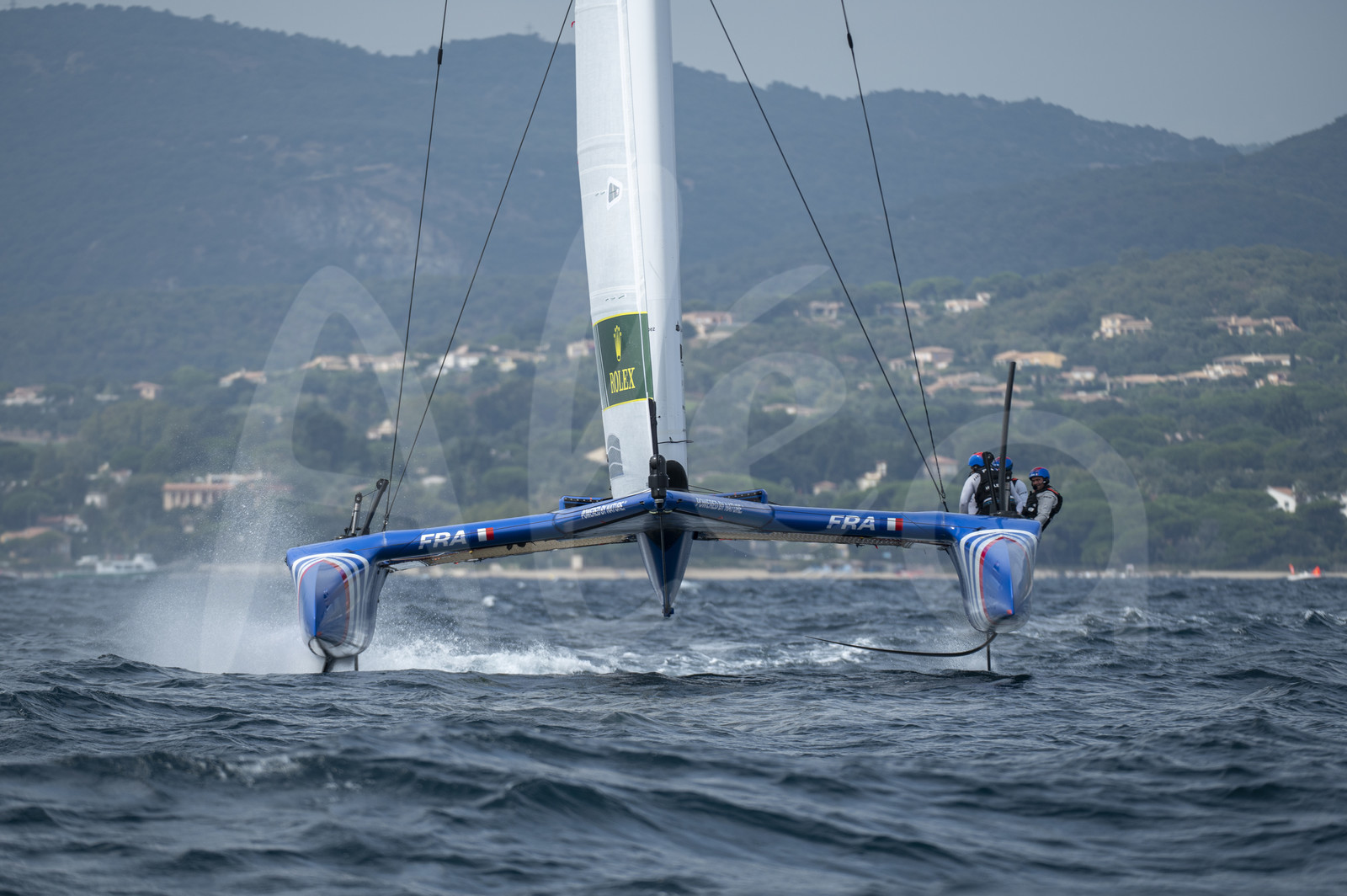 | Description | ST TROPEZ, FRANCE - SEPTEMBER 10: Billy Besson’s France SailGP Team is competing during practice day of SailGP on Saint-Tropez Harbour on September 10, 2021 in St Tropez, France. (Photo by Olivier Blanchet /Alea) |