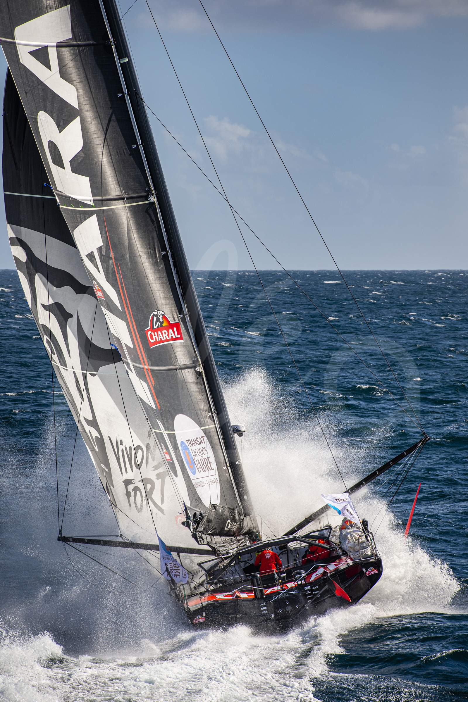 Description | LORIENT, FRANCE - SEPTEMBER 27: French skippers Jeremie Beyou and Christopher Pratt are training on the Imoca Charal, prior to the Transat Jacques Vabre, sailing race in duo from Le Havre to Fort de France, on September 27, 2021 off Lorient, France. (Photo by Bernard Le Bars/ALeA) |