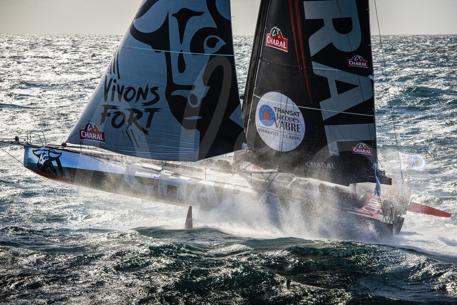 Description | LORIENT, FRANCE - SEPTEMBER 27: French skippers Jeremie Beyou and Christopher Pratt are training on the Imoca Charal, prior to the Transat Jacques Vabre, sailing race in duo from Le Havre to Fort de France, on September 27, 2021 off Lorient, France. (Photo by Bernard Le Bars/ALeA) |