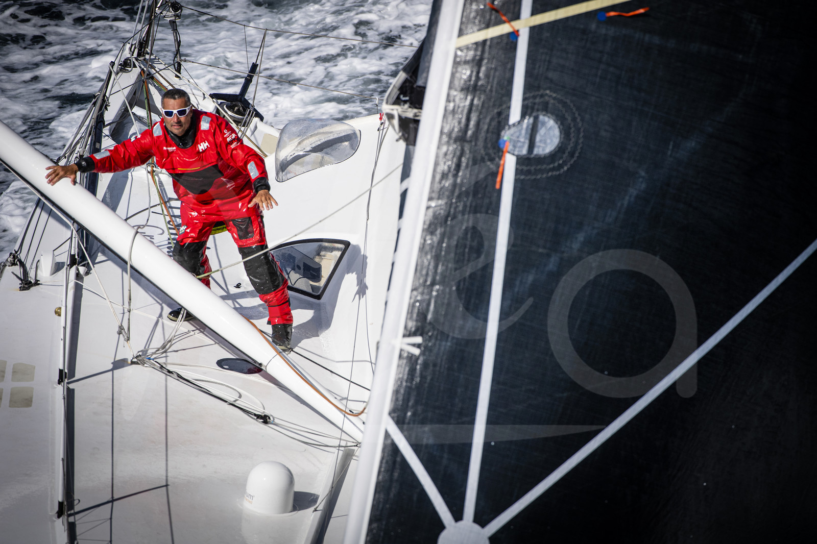 Description | LORIENT, FRANCE - SEPTEMBER 27: Skippers Giancarlo Pedote and Martin Le Pape are training on the Imoca Prysmian Group, prior to the Transat Jacques Vabre, sailing race in duo from Le Havre to Fort de France, on September 27, 2021 off Lorient, France. (Photo by Bernard Le Bars/ALeA) |