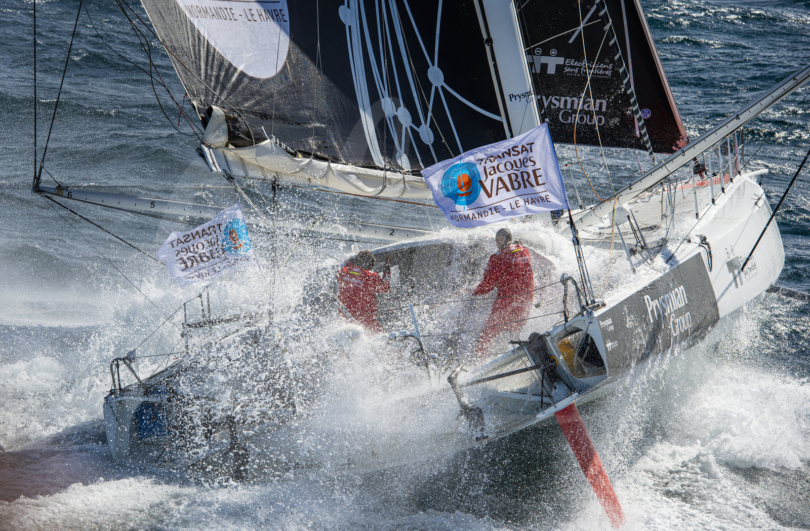 | Description | LORIENT, FRANCE - SEPTEMBER 27: Skippers Giancarlo Pedote and Martin Le Pape are training on the Imoca Prysmian Group, prior to the Transat Jacques Vabre, sailing race in duo from Le Havre to Fort de France, on September 27, 2021 off Lorient, France. (Photo by Bernard Le Bars/ALeA) |