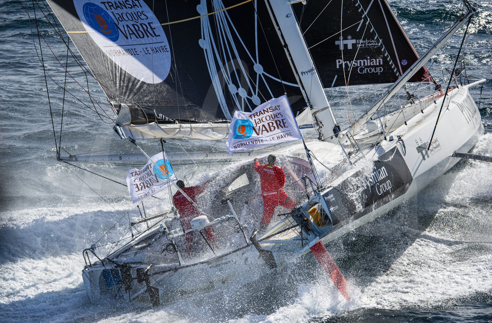 Description | LORIENT, FRANCE - SEPTEMBER 27: Skippers Giancarlo Pedote and Martin Le Pape are training on the Imoca Prysmian Group, prior to the Transat Jacques Vabre, sailing race in duo from Le Havre to Fort de France, on September 27, 2021 off Lorient, France. (Photo by Bernard Le Bars/ALeA) |