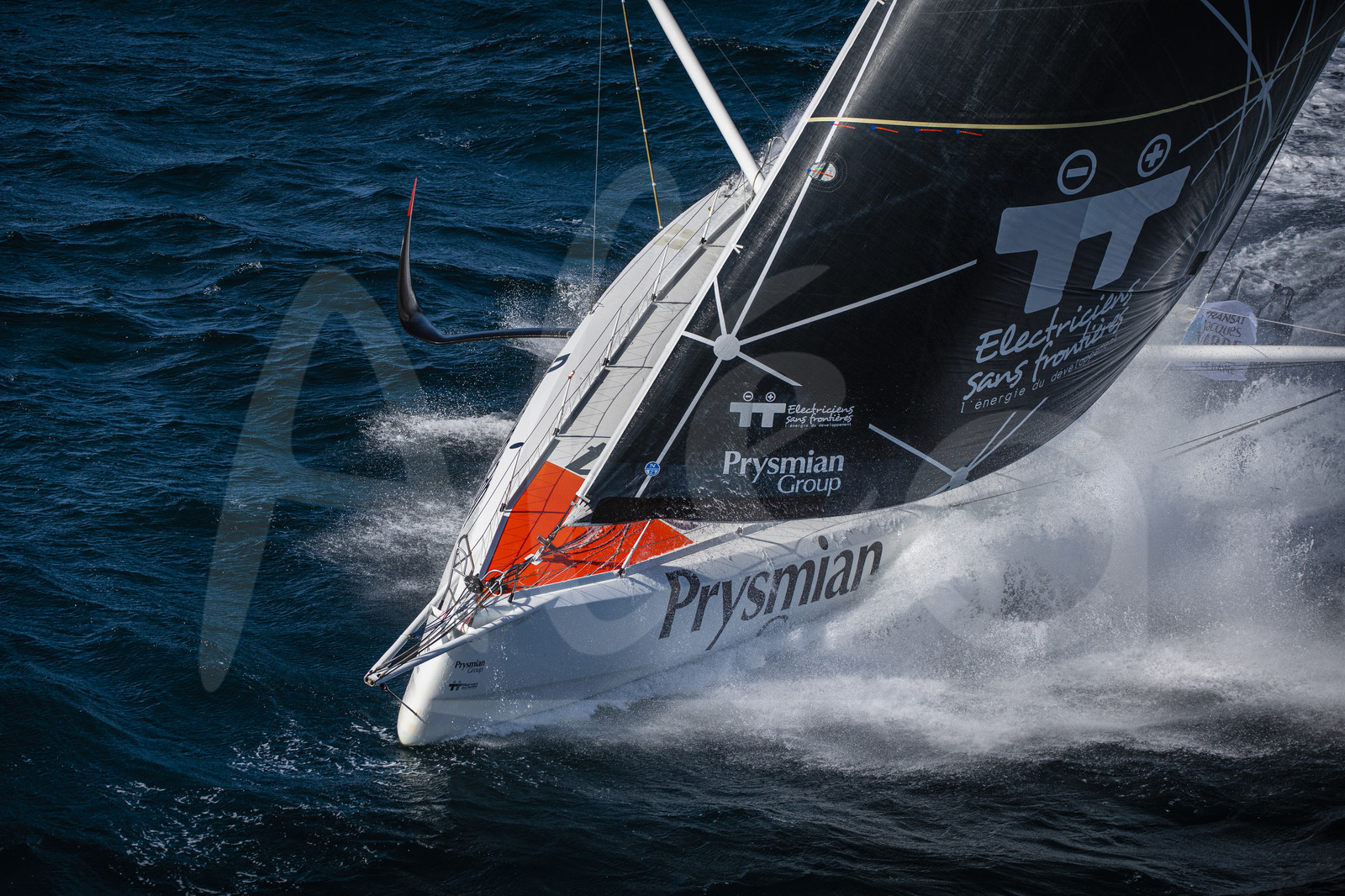 Description | LORIENT, FRANCE - SEPTEMBER 27: Skippers Giancarlo Pedote and Martin Le Pape are training on the Imoca Prysmian Group, prior to the Transat Jacques Vabre, sailing race in duo from Le Havre to Fort de France, on September 27, 2021 off Lorient, France. (Photo by Bernard Le Bars/ALeA) |
