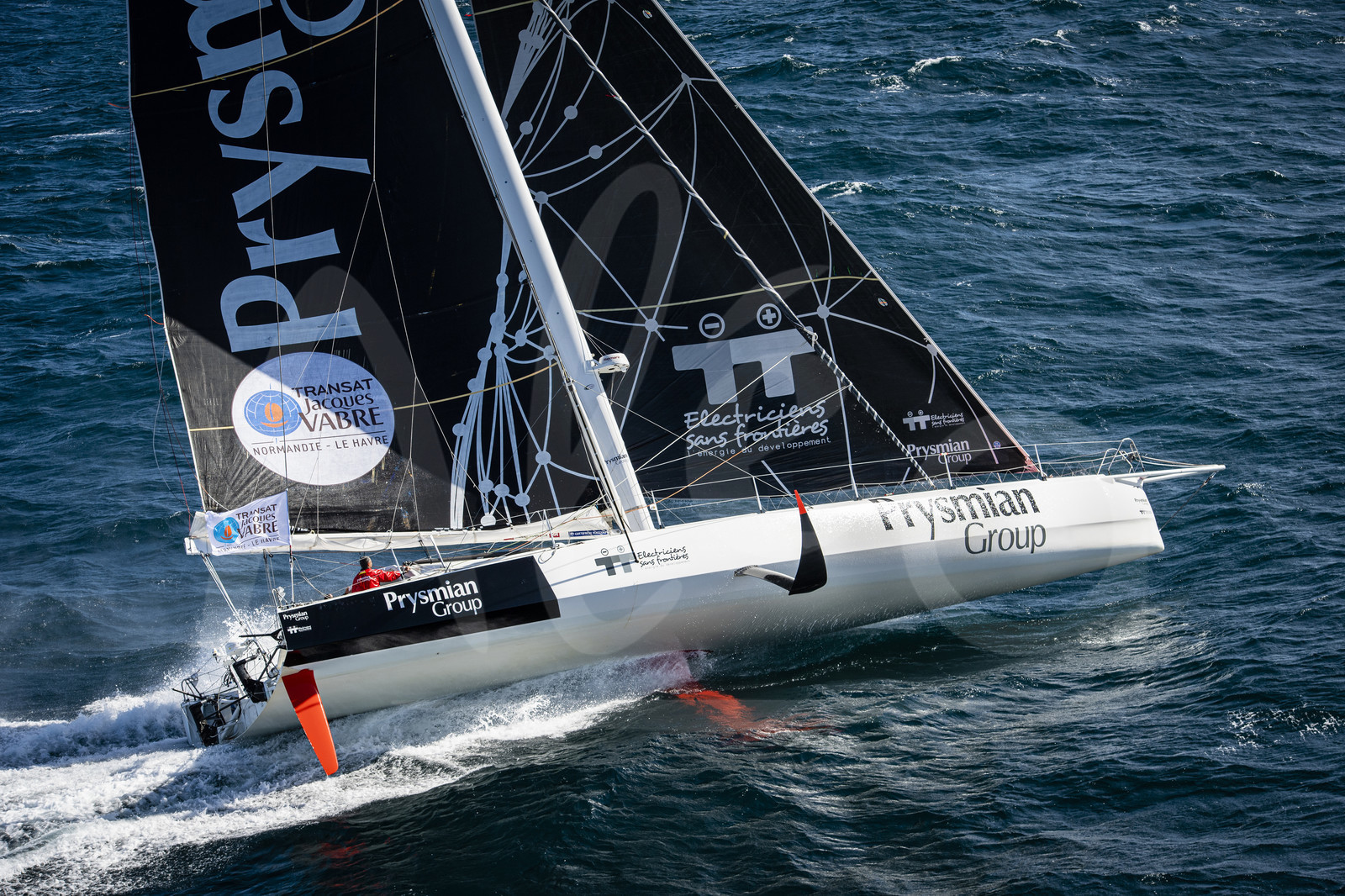 Description | LORIENT, FRANCE - SEPTEMBER 27: Skippers Giancarlo Pedote and Martin Le Pape are training on the Imoca Prysmian Group, prior to the Transat Jacques Vabre, sailing race in duo from Le Havre to Fort de France, on September 27, 2021 off Lorient, France. (Photo by Bernard Le Bars/ALeA) |