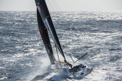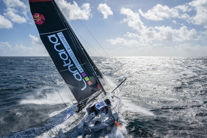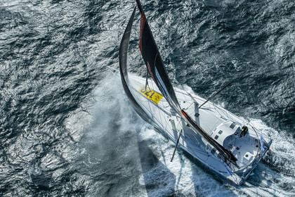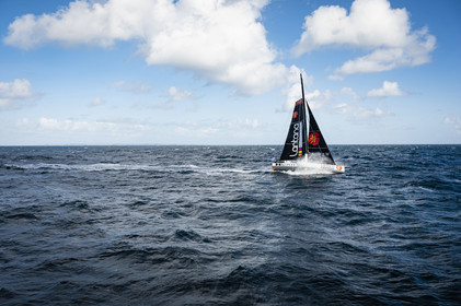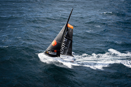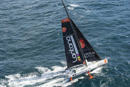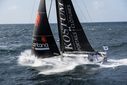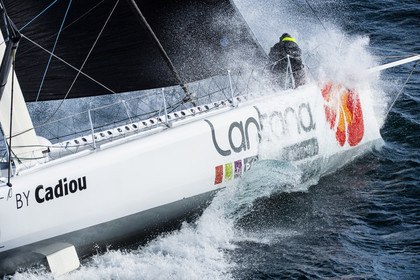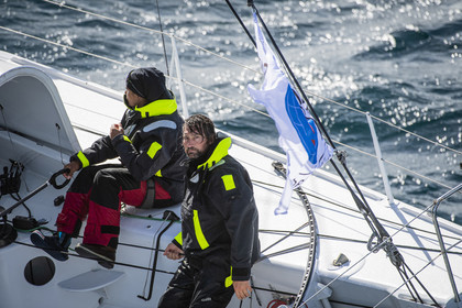 Sélection d'images de l'Imoca Kostum - Lantana Paysage (Louis Duc et Marie Tabarly) s'entrainant au large de Lorient le 27 Septembre 2021, en vue de la Transat Jacques Vabre 2021. La course partira le 7 Novembre du Havre, à destination de Fort de France.