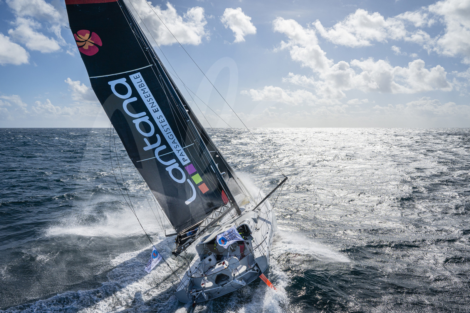 Description | LORIENT, FRANCE - SEPTEMBER 27: French skippers Louis Duc and Marie Tabarly are training on the Imoca Kostum - Lantana Paysage, prior to the Transat Jacques Vabre, sailing race in duo from Le Havre to Fort de France, on September 27, 2021 off Lorient, France. (Photo by Bernard Le Bars/ALeA) |