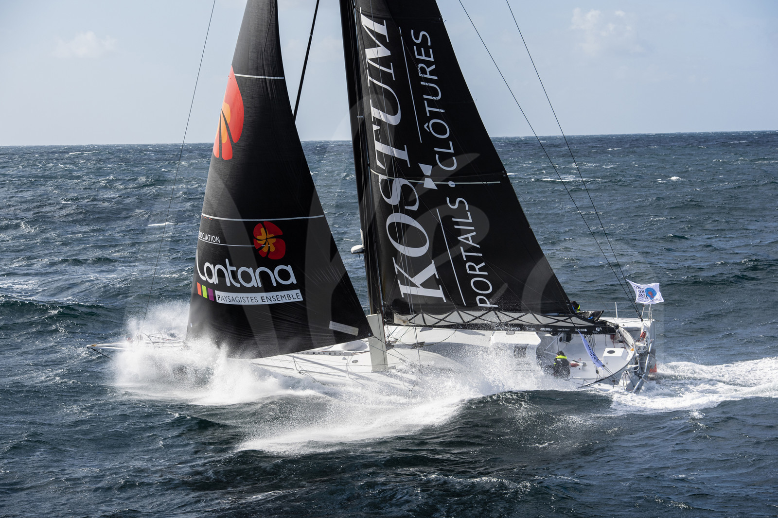 Description | LORIENT, FRANCE - SEPTEMBER 27: French skippers Louis Duc and Marie Tabarly are training on the Imoca Kostum - Lantana Paysage, prior to the Transat Jacques Vabre, sailing race in duo from Le Havre to Fort de France, on September 27, 2021 off Lorient, France. (Photo by Bernard Le Bars/ALeA) |