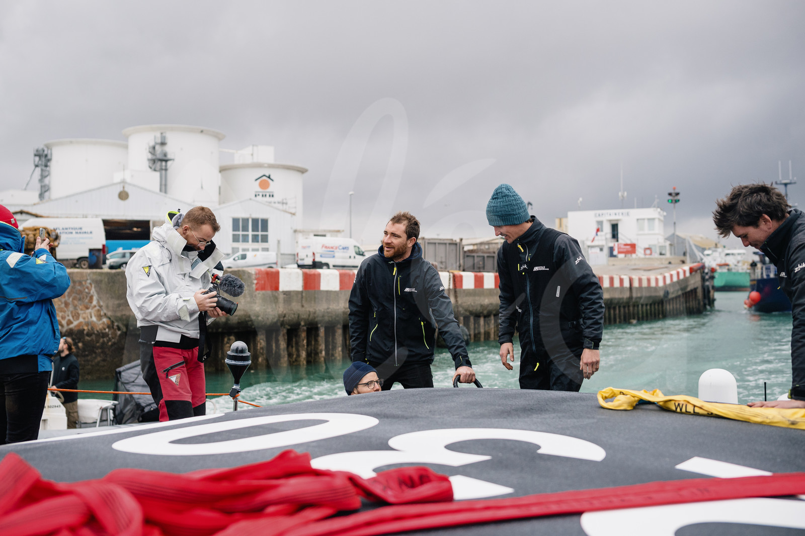 | Description | LES SABLES D’OLONNE, FRANCE - FEBRUARY 10 : French skipper Benjamin Dutreux and his team Eole Performance are receiving their new Imoca boat, ex-11th Hour, for their Vendee Globe 2024 campaign, in Les Sables d’Olonne, on February 10th, 2022. (photo by Jean-Louis Carli / Alea) |