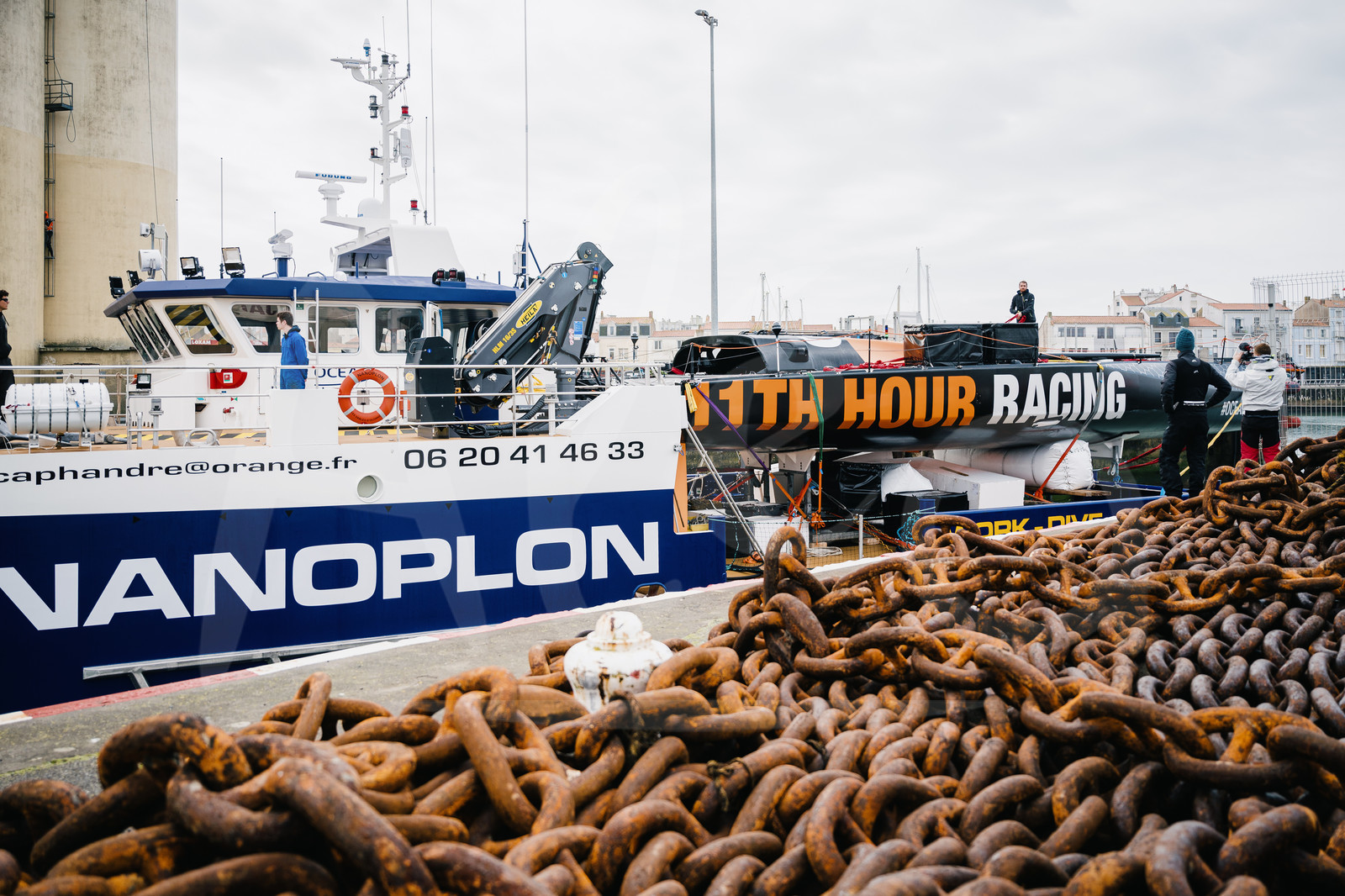 Description | LES SABLES D’OLONNE, FRANCE - FEBRUARY 10 : French skipper Benjamin Dutreux and his team Eole Performance are receiving their new Imoca boat, ex-11th Hour, for their Vendee Globe 2024 campaign, in Les Sables d’Olonne, on February 10th, 2022. (photo by Jean-Louis Carli / Alea) |