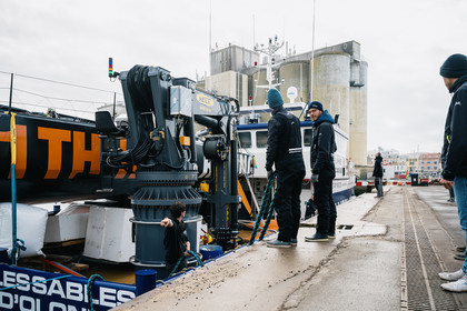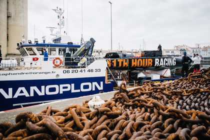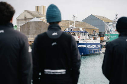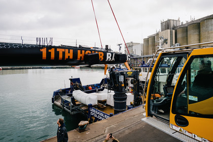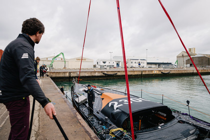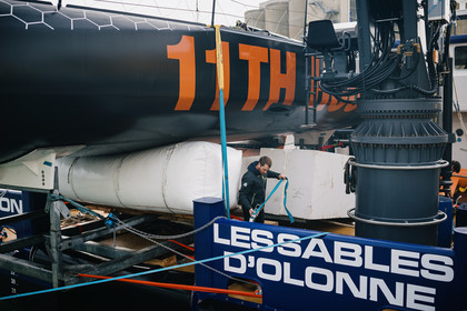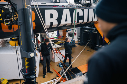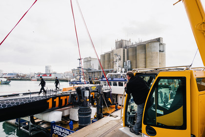 Reportage sur l'arrivée du nouvel Imoca de Benjamin Dutreux, l'ex-11th Hour Racing, pour sa campagne Vendée Globe 2024.