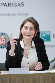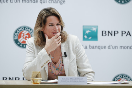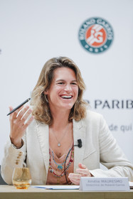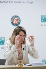 Sélection de portraits de Gilles Moretton, Amélie Mauresmo, Amélie Oudéa Castera et Sarah Pitkowski, pendant la conférence de presse de Roland Garros 2022, le 16 Mars 2022.