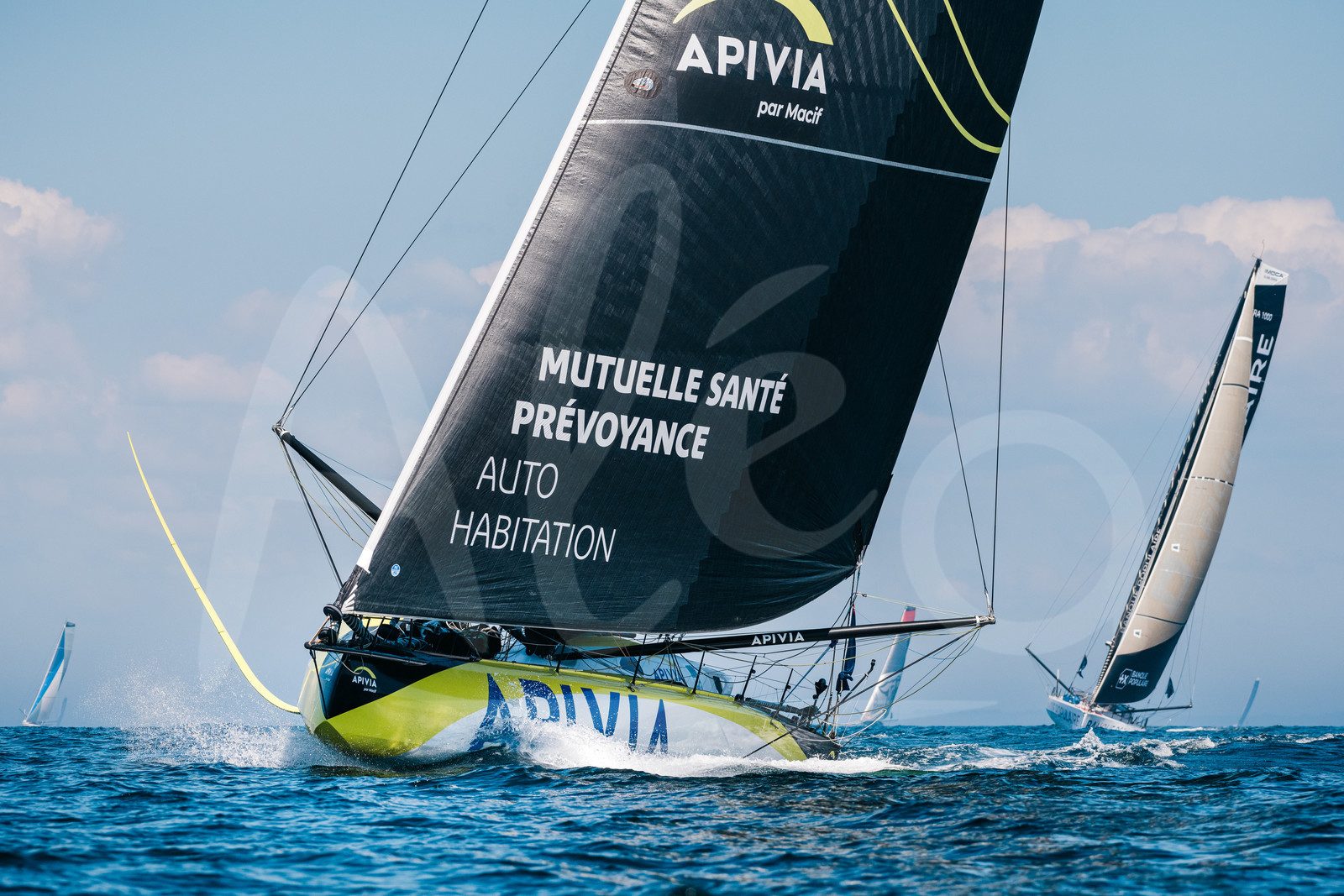 Description | BREST, FRANCE - MAY 8 : APIVIA, skipper Charlie Dalin, is illustrated during start of the Imoca Guyader Bermudes 1000 sailing race, in Brest, on May 8th, 2022. (photo by Jean-Louis Carli / Alea) |