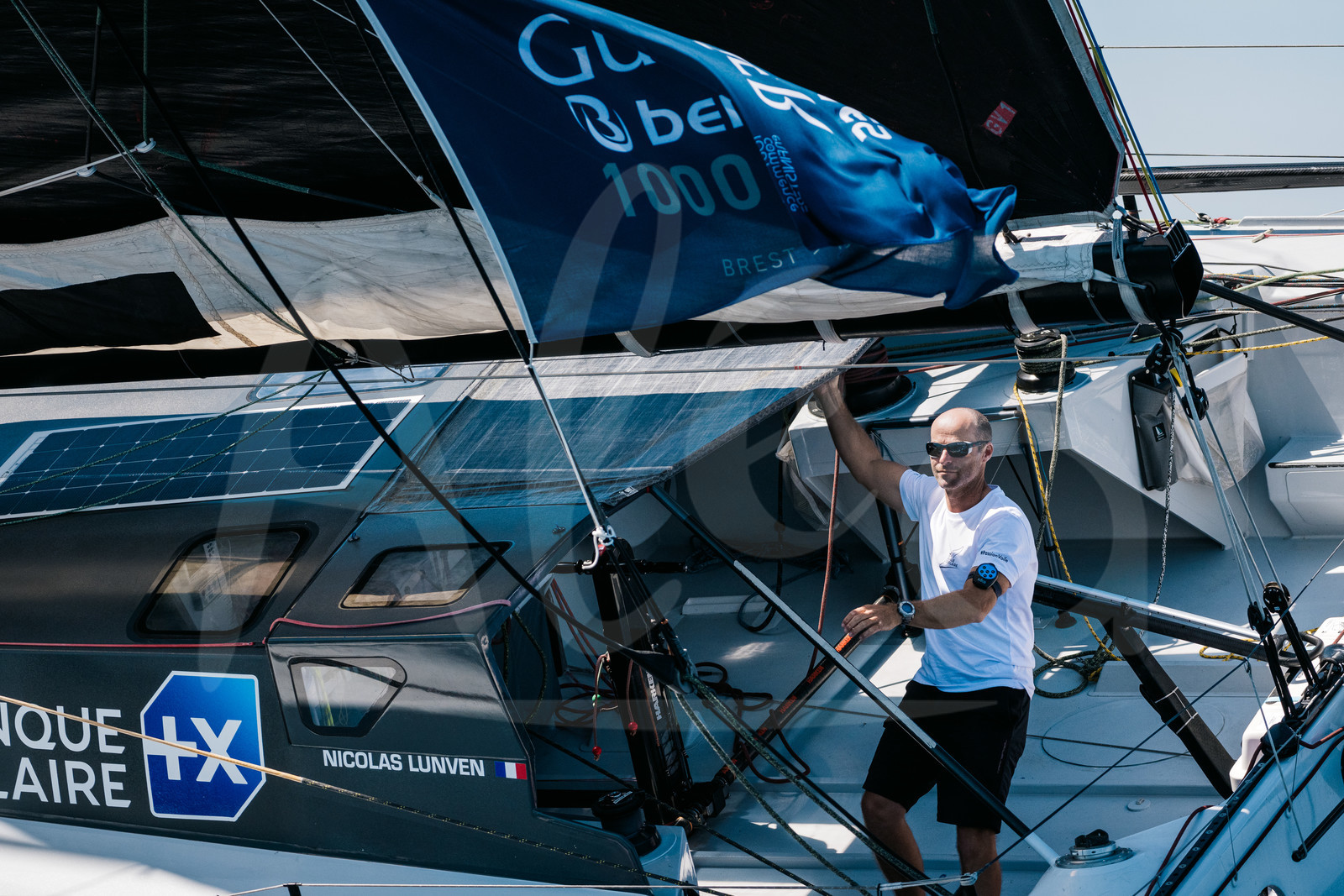 Description | BREST, FRANCE - MAY 8 : Skipper Nicolas Lunven, Banque Populaire, is illustrated during start of the Imoca Guyader Bermudes 1000 sailing race, in Brest, on May 8th, 2022. (photo by Jean-Louis Carli / Alea) |