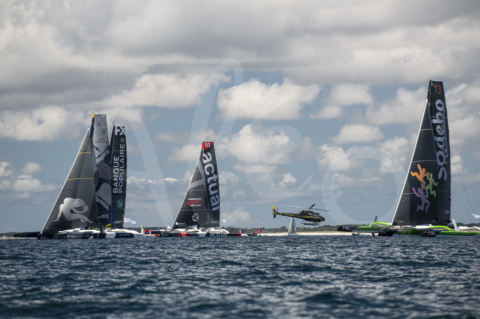 | Description | CONCARNEAU, FRANCE - JULY 01: Ultim boats Banque Populaire, Actual Ultim 3, Sodebo Ultim 3 and Maxi Edmond de Rothschild are taking start of the sailing race Finistere Atlantique, on July 1, 2022 in Concarneau, France. (Photo by Vincent Curutchet/Alea) |