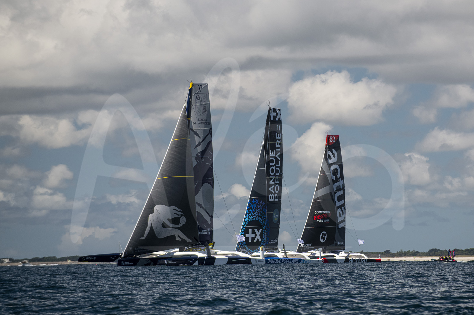 Description | CONCARNEAU, FRANCE - JULY 01: Ultim boats Banque Populaire, Actual Ultim 3 and Maxi Edmond de Rothschild are taking start of the sailing race Finistere Atlantique, on July 1, 2022 in Concarneau, France. (Photo by Vincent Curutchet/Alea) |
