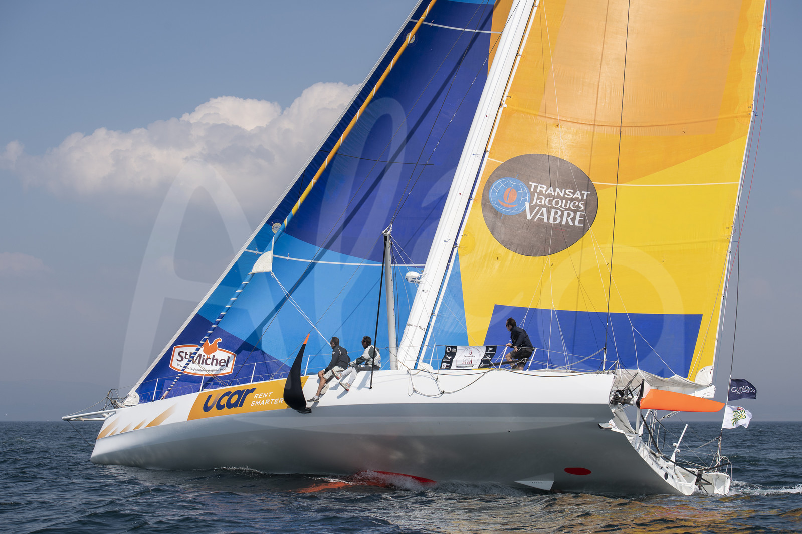Description | Skipper Yann Elies, UCAR, pendant le Trophée des voiliers de la classe IMOCA durant le Grand Prix Guyader à Douarnenez, Bretagne, le 7 Mai 2018 - Photo Olivier Blanchet / Alea |