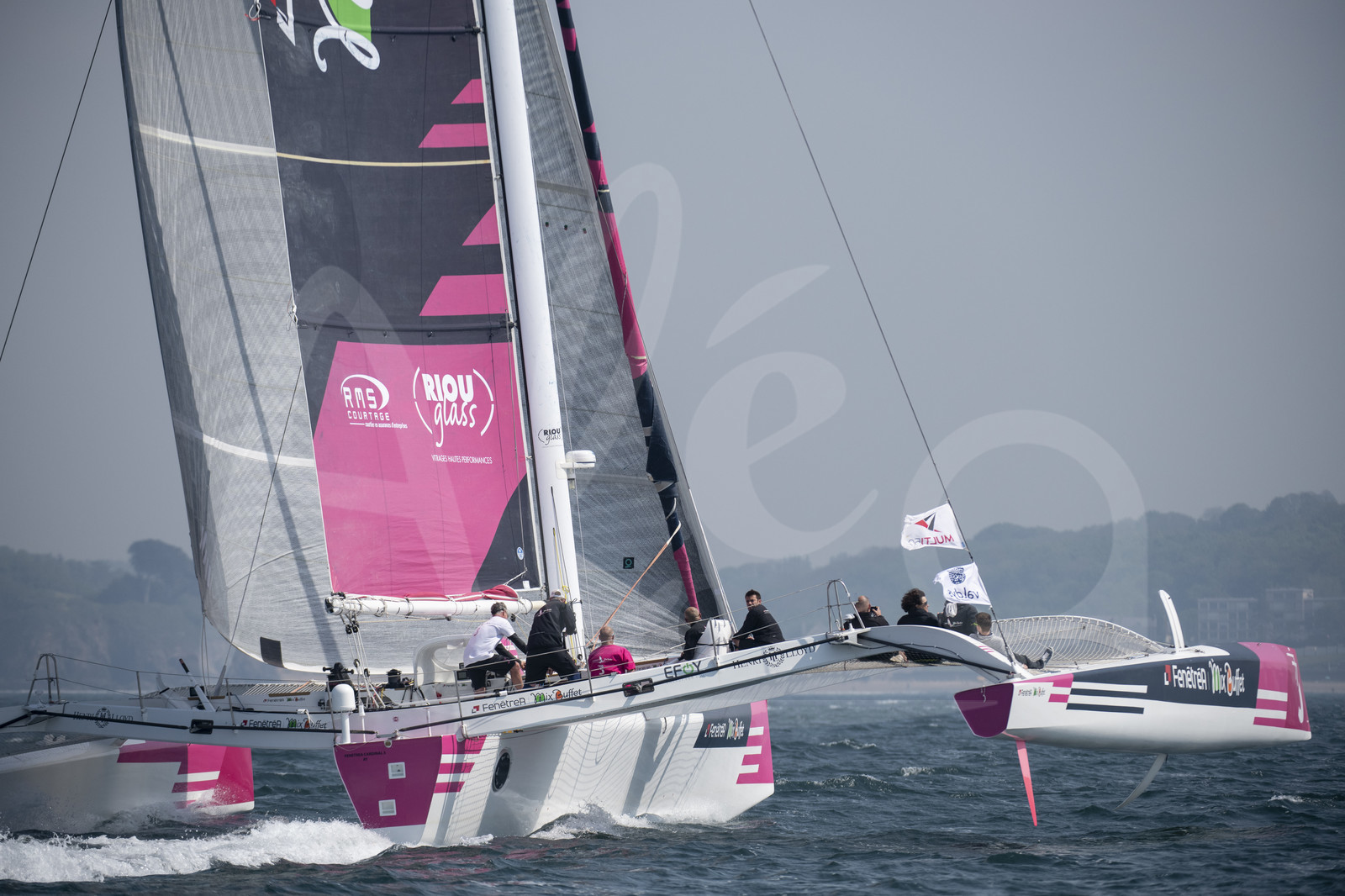 Description | Course des Multi 50, Fenetrea Mix Buffet, skipper Erwan Le Roux, durant le Grand Prix Guyader à Douarnenez, Bretagne, le 7 Mai 2018 - Photo Olivier Blanchet / Alea |