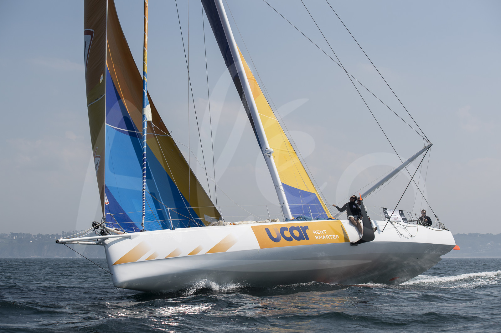 Description | Skipper Yann Elies, UCAR, pendant le Trophée des voiliers de la classe IMOCA durant le Grand Prix Guyader à Douarnenez, Bretagne, le 7 Mai 2018 - Photo Olivier Blanchet / Alea |