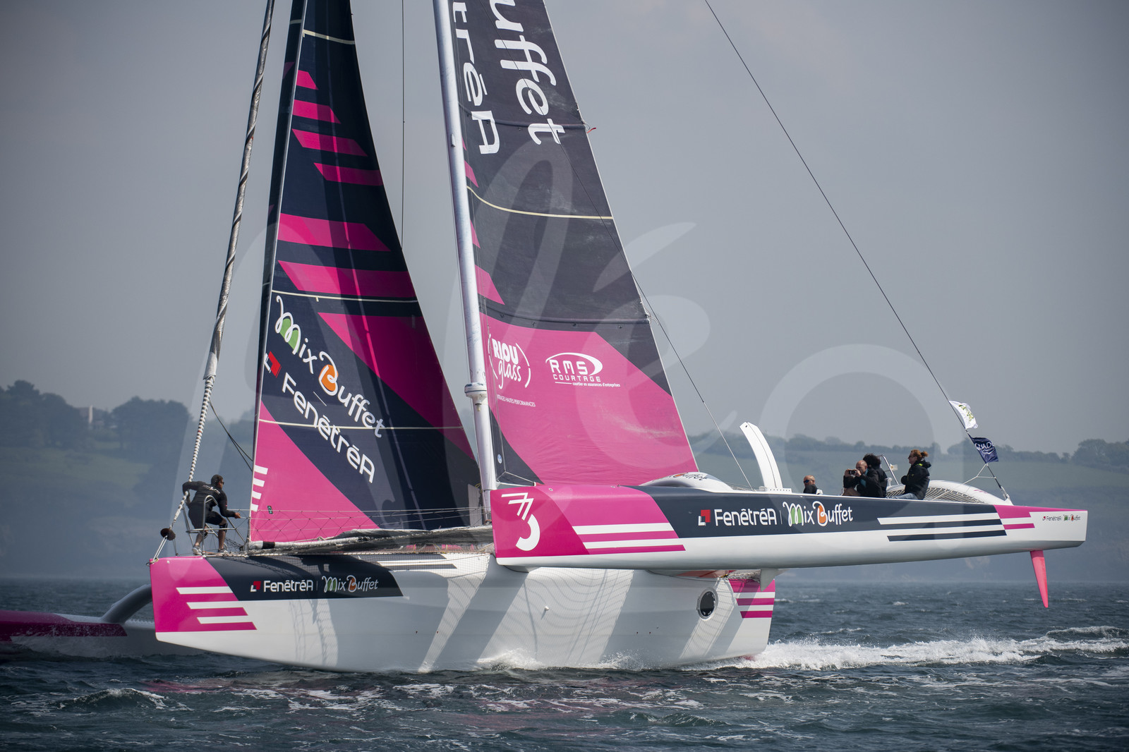 Description | Course des Multi 50, Fenetrea Mix Buffet, skipper Erwan Le Roux, durant le Grand Prix Guyader à Douarnenez, Bretagne, le 7 Mai 2018 - Photo Olivier Blanchet / Alea |