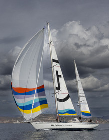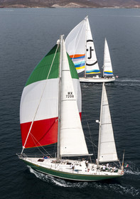 Le Swan 65 Translated_9 participera à l'Ocean Globe Race 2023 et rencontre ici le légendaire vainqueur de la Whitbread Around The World Race de 1973 "Sayula II" à La Paz, au Mexique, le 20 août 2022 - Photos de Carlo Borlenghi / Alea